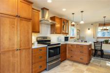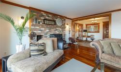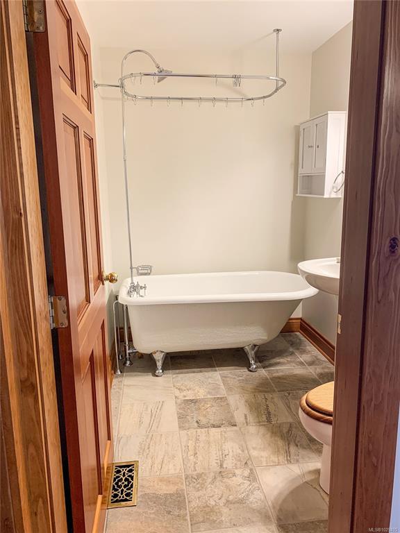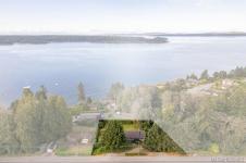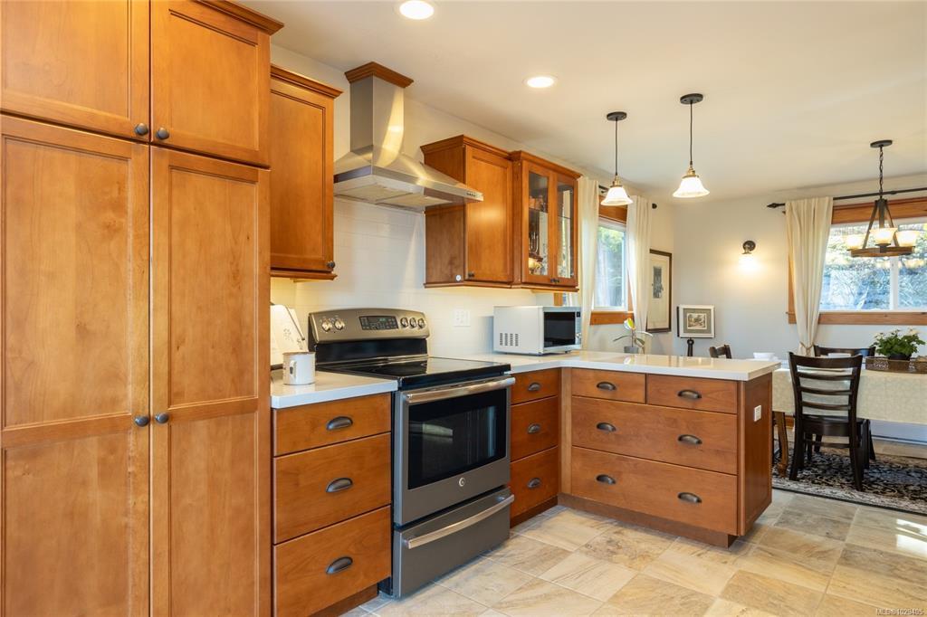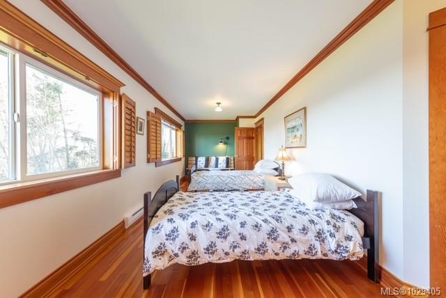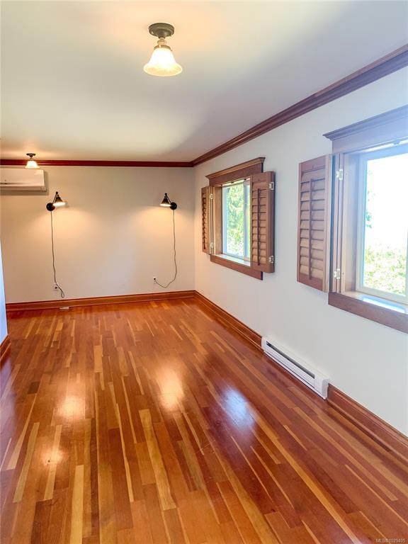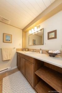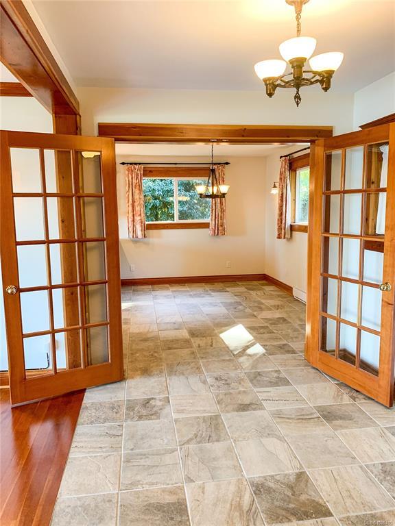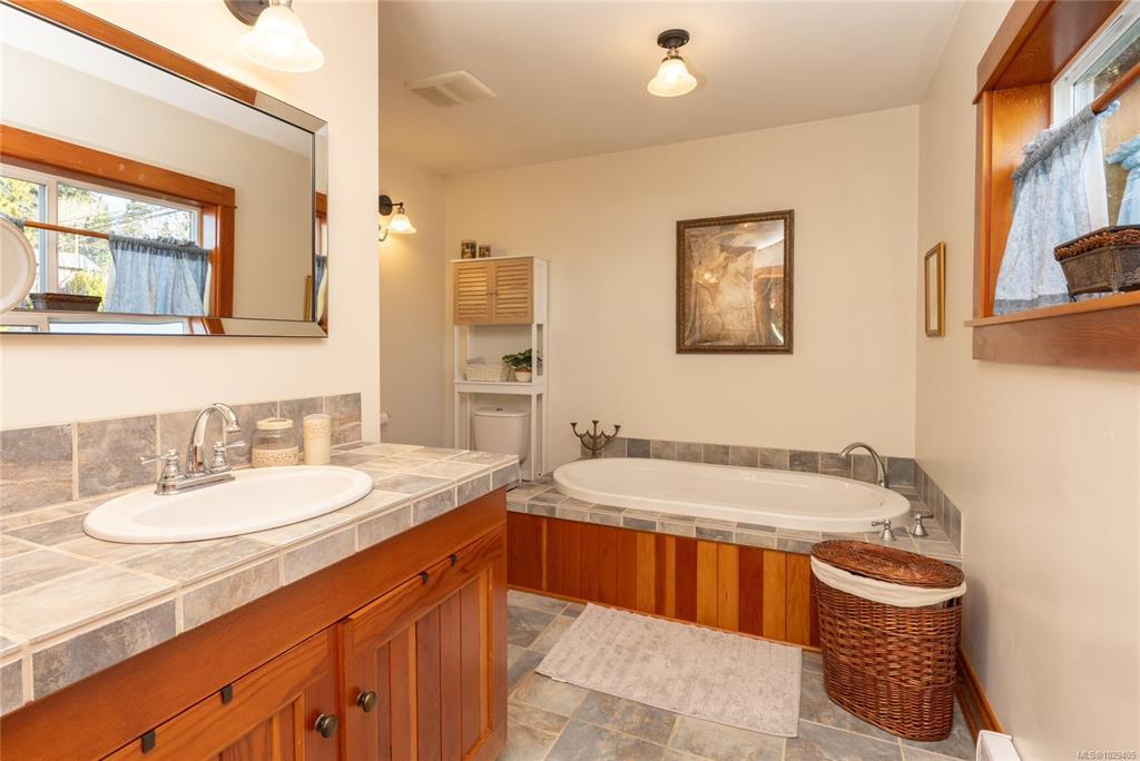 Stunning ocean views and refined craftsmanship define this beautifully renovated home just south of Ladysmith, overlooking the Stuart Channel. Rich wood accents, hardwood flooring, and custom finishes create a warm yet elevated feel throughout. The main level opens to a bright living space with a feature fireplace and expansive views, flowing into a thoughtfully designed kitchen with quartz counters, apron sink, and quality cabinetry. Indoor and outdoor living connect seamlessly, with a rear deck ideal for morning coffee or evening entertaining surrounded by mature landscaping and fruit trees. The spacious primary suite offers a walk in closet and ensuite, complemented by a den or office on the main. The walk out lower level provides additional living space, bedroom, and versatility for hobbies or guests. A forested path to nearby beach access completes this exceptional West Coast lifestyle.