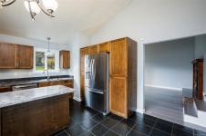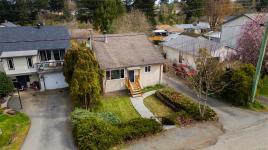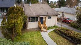 Delightfully different. This renovated 3 level split lives much larger than the floor area would suggest with 2 spacious bdrms up, a roomy living area w/13' vaulted ceiling, updated kitchen with S/S appliances (incl Rangehood M/W & D/W) + room for a proper table set. Step down a few stairs to a real family room w/patio doors to a terrific back yard c/w with lane access. Barn door leads to laundry, storage & 3 pce bath. In the heart of the University District, this home has just received a lovely renovation making it move in ready with quick possession. Lvrm features a nice wood burning F/P plus vaulted Cedar ceiling w/ceiling fan. Other features incl. tile flooring in kitchen, vinyl sash windows, new H20 tank, wood stove (WETT) & updated bathrooms on each floor, white interior doors & trim plus fresh paint throughout. All on a nice fenced lot with cement patio & gazebo, storage sheds plus theres even a cement foundation ready for a detached garage/shop at the lane if you so choose.