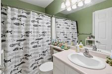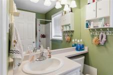 space, while the cozy gas fireplace creates a warm focal point. The home features newer appliances