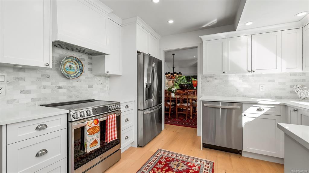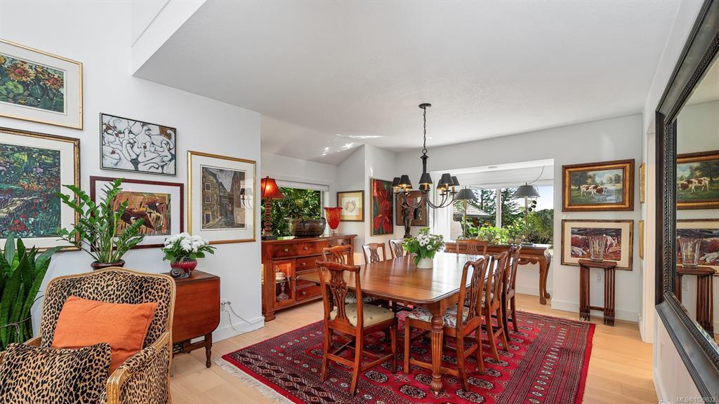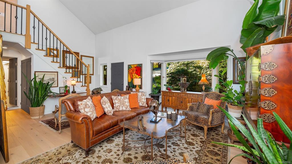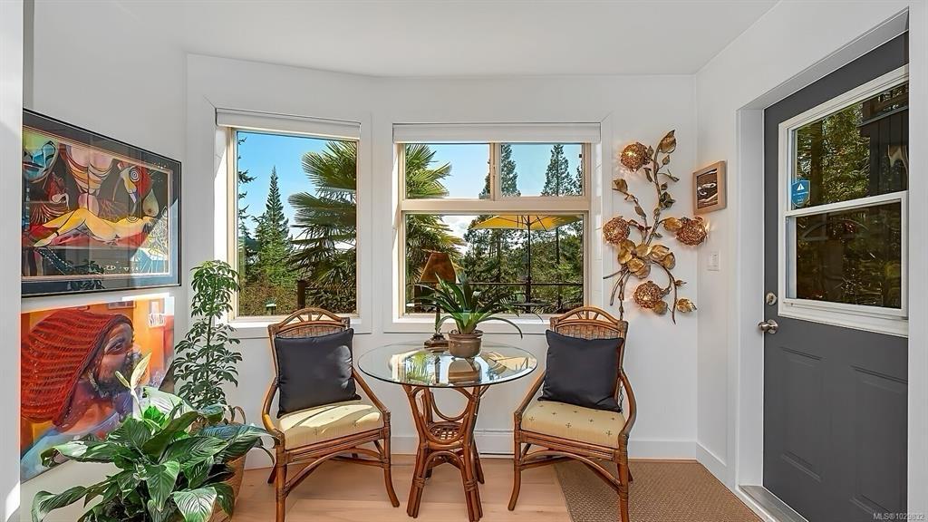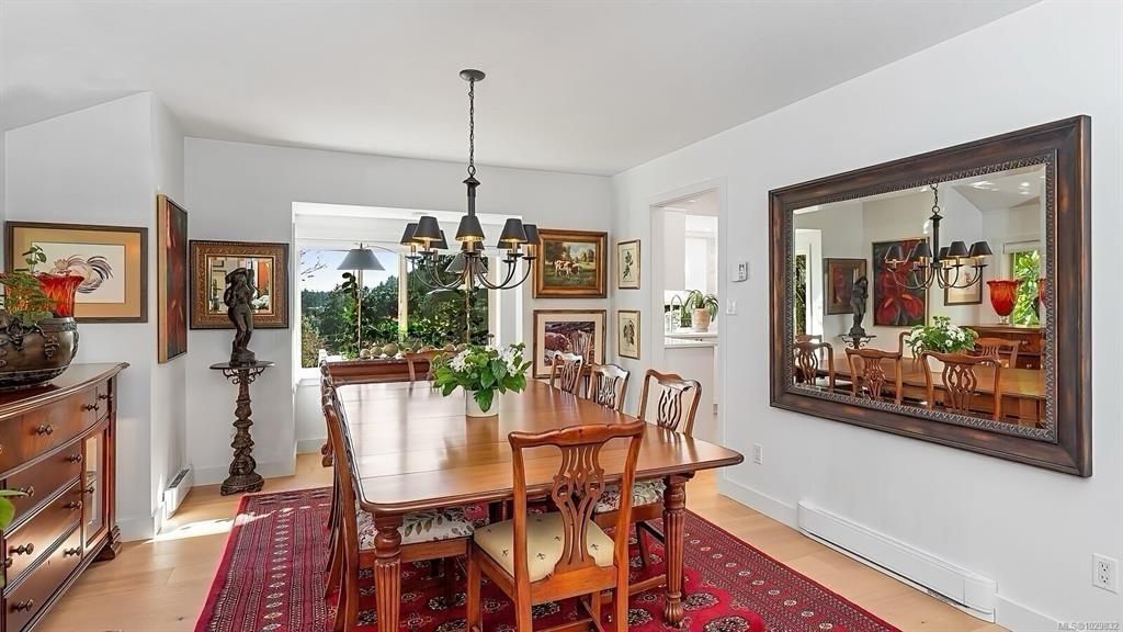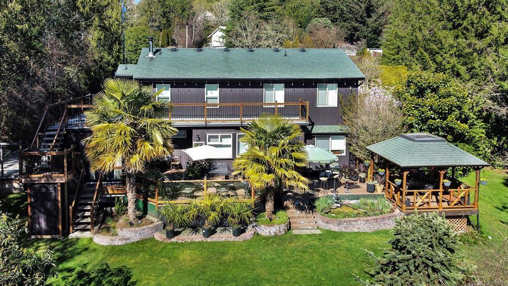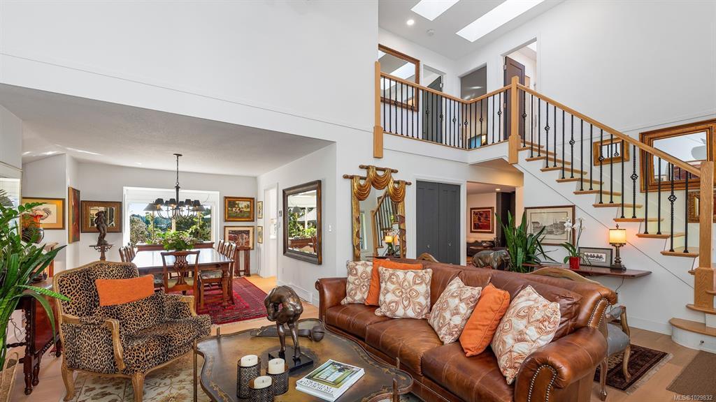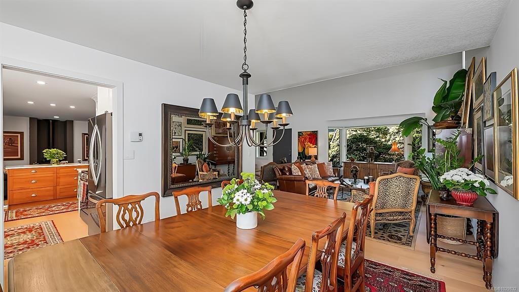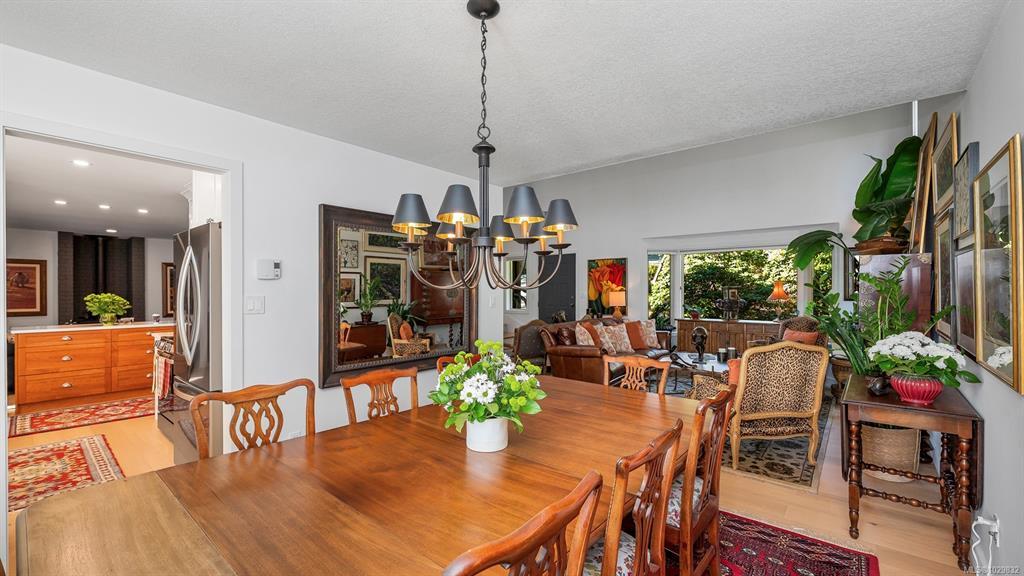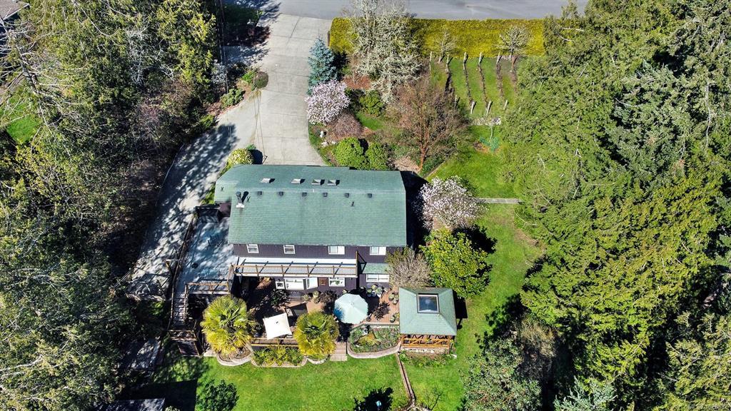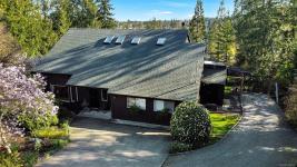 Beautifully renovated and ready for family living! Turn key 5 bed 4 bath home with 2 incomes offers open floor plan, vaulted ceilings, and white oak flooring throughout. Custom kitchen flows seamlessly into main living area centered around a cozy wood fireplace. Primary bedroom is a private retreat with a well appointed ensuite featuring large soaker tub and generous closets. New interior and exterior paint, blinds, doors and wood trim, along with added pantry and storage space. Guest suite provides flexibility for family or income. South facing decks capture water and mountain views, while a gazebo overlooks the established orchard and vineyard. Property offers future potential for a carriage house. Additional features include 2 driveways, extra large steel garage, garden sheds, irrigation system, deer fence, and security system. Conveniently located minutes from the ferry, airport, and Sidney. Rare opportunity for families seeking space, privacy, and income.
