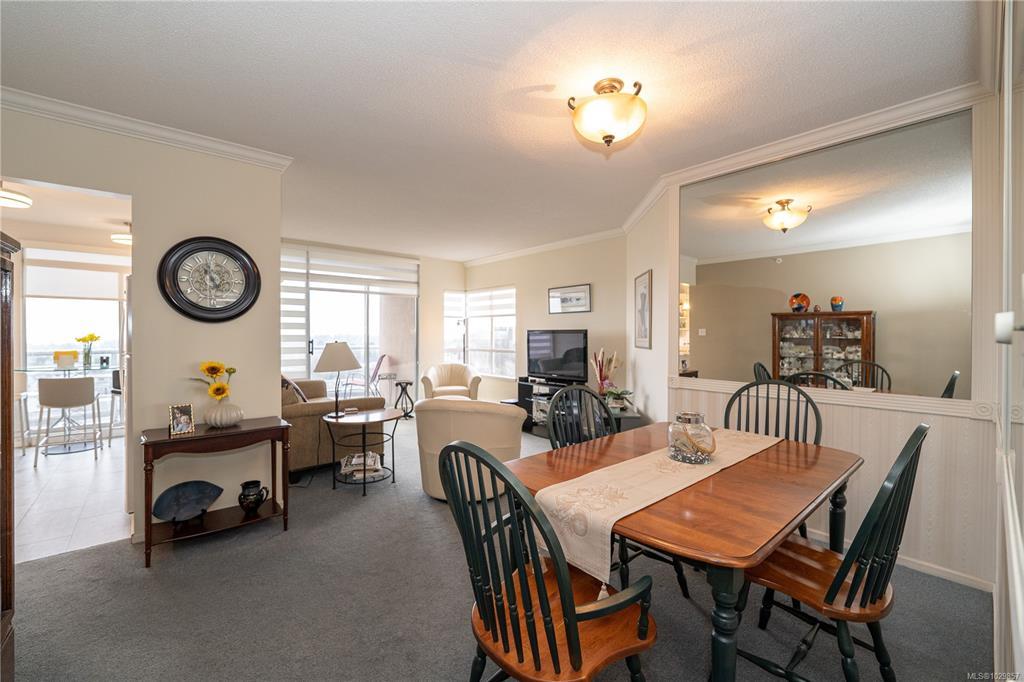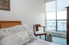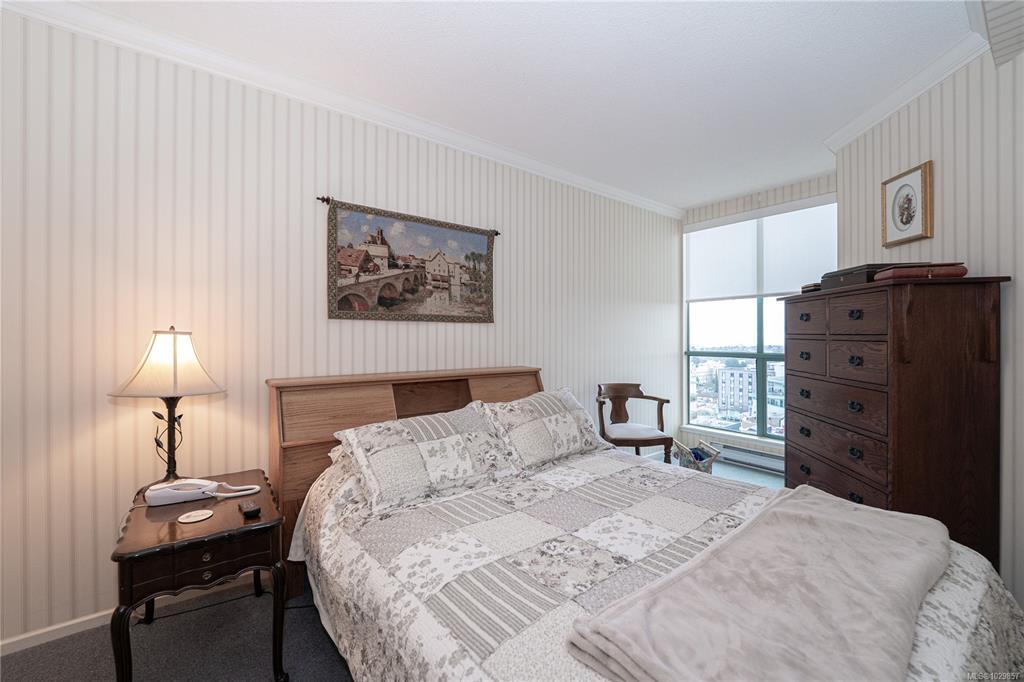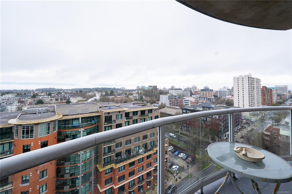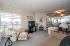 Built in 1992 as the City's Prestigious 'Regents Park' offering the finest Steel & Cast in place concrete construction and quality finishings with 8'6" ceilings, award winning spacious design, the finest in amenities, with incomparable views and location. Considered the best view offered of both towers this unit directly faces south with 180 degree views incorporating East and West exposure as well. View on a clear day and the Ocean & Olympic Mountains will take your breath away. Unique because this view is unlikely to change as primarily new builds already in place. The layout offers exceptional space and separation with bedrooms at either end and spacious open living/dining great for entertaining. The kitchen has a separate eating area to sip your morning coffee with the best views in town. The primary bedroom offers views, walk through closets and 3pc ensuite. There is an actual laundry room and space for all your furniture. Yes there are plans to revitalize the exterior to new.