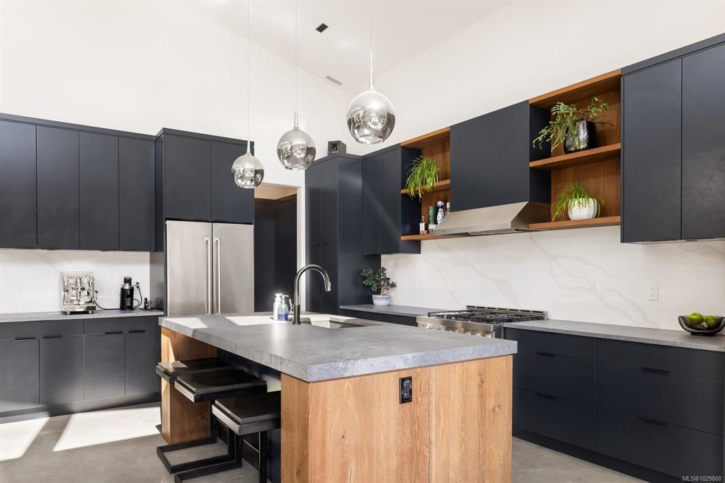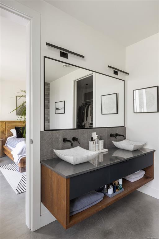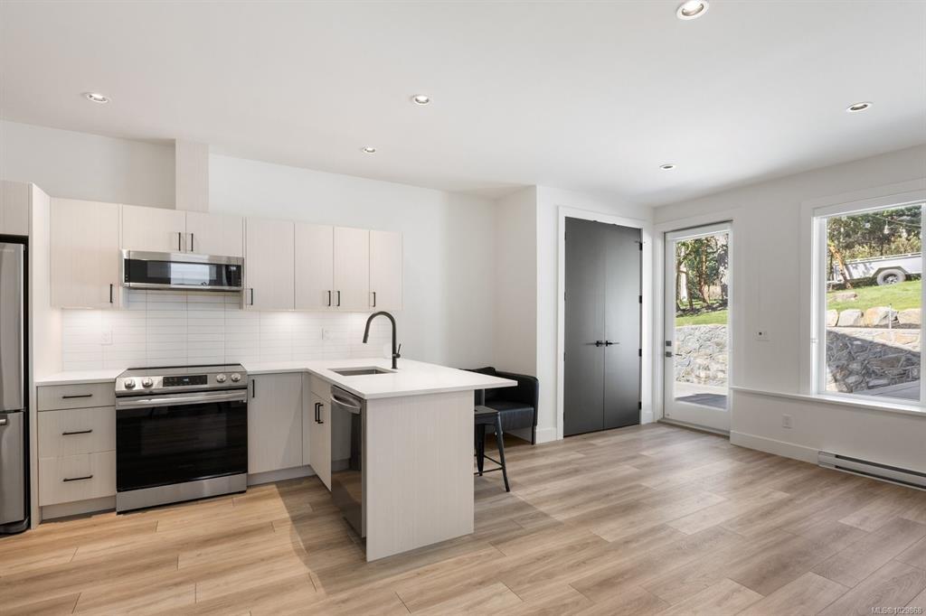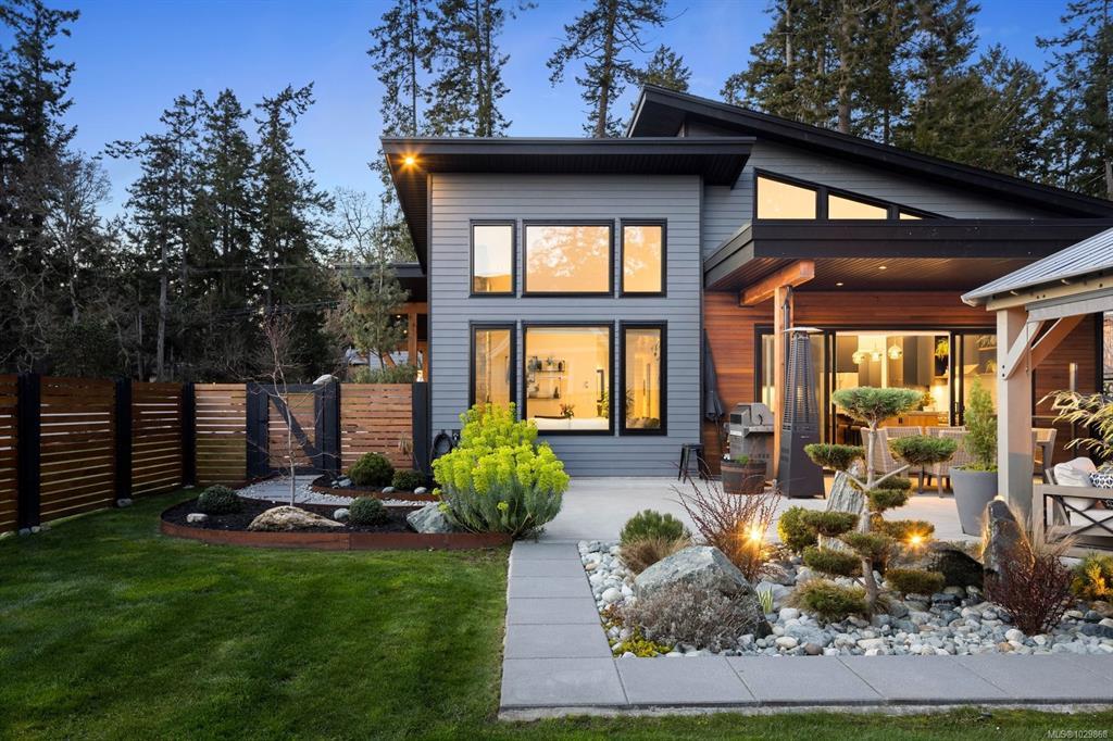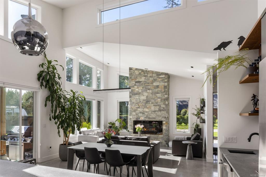 Set on a beautifully landscaped 0.42-acre property in sought-after Deep Cove, this exceptional 2022-built rancher by Philco Construction offers refined single-level living with a warm, modern aesthetic. Featuring 2,868 sq.ft., the home showcases soaring 9’–18’ ceilings, polished concrete floors with radiant in-floor heating, and expansive windows throughout. The open-concept living space is anchored by a stunning chef’s kitchen with custom millwork by Thomas Phillips, large island, and seamless flow to dining and living areas with a striking stone fireplace. Offering 4 bedrooms and 5 bathrooms, including three ensuites, plus a media/family room. A fully self-contained 1-bedroom suite with private entry, patio, and parking adds flexibility. Enjoy over 1,400 sq.ft. of patio space, hot tub, and private, fully fenced yard. Oversized double garage. Minutes to beaches, marinas, airport, ferries, and Sidney amenities.