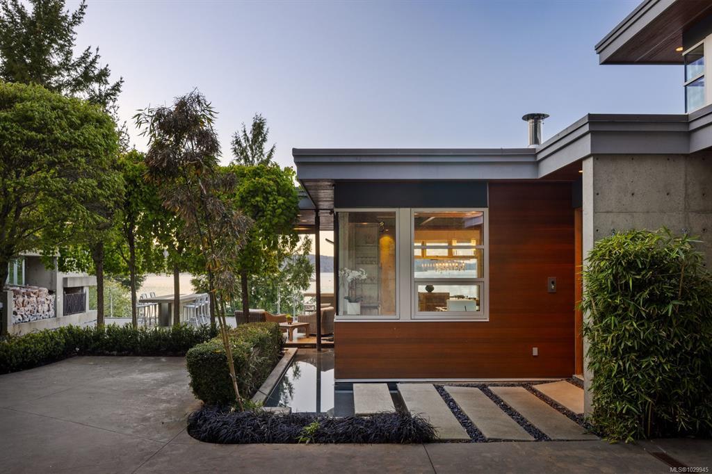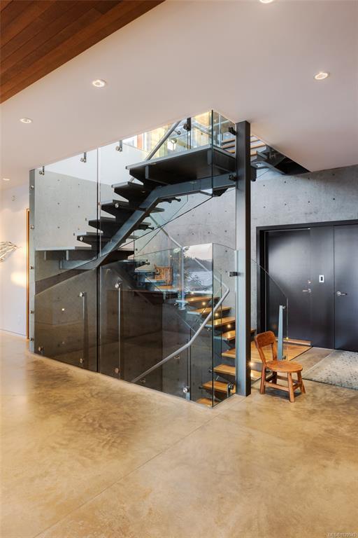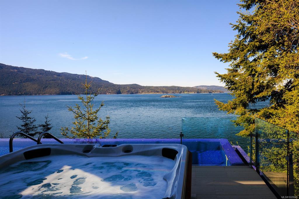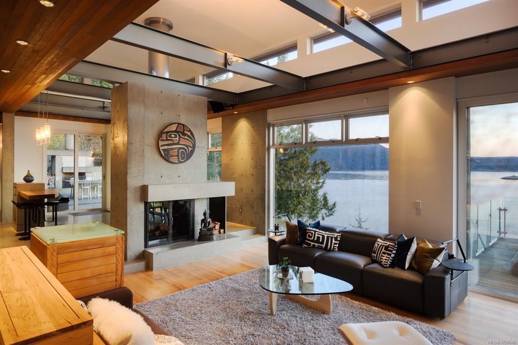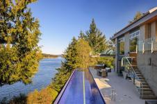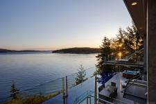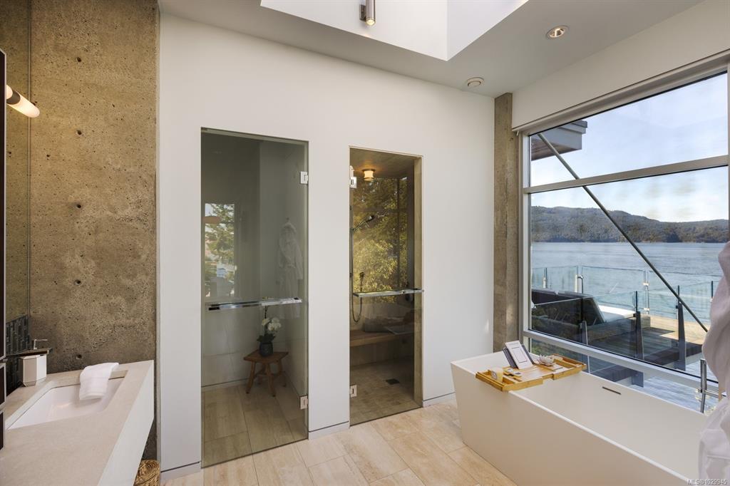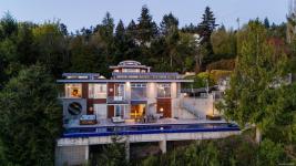 Oceanfront Masterpiece. Seldom does a home of this extraordinary, world class calibre come available. Perfectly sited on 1.59 private acres with 625' of ocean frontage, the steel & concrete residence offers panoramic ocean & island views from floor-to-ceiling windows. A flybridge extends from the living area, delivering front-row seats to an 82' infinity pool perfectly aligned for sunrises over Mt Baker to glowing ocean sunsets. Inside, sustainable geothermal heating warms polished concrete floors while wood finishes give warm hues in floating stairs, inlaid floors & custom cabinetry. A deluxe main-floor primary retreat has sweeping vistas & a spa-like ensuite. Lower level features guest suites, media room, wine cellar & poolside gym w/ retractable glass doors for seamless access.Upstairs, a family room is a quiet escape. The gourmet kitchen opens to an outdoor BBQ area with man-made stream & waterfall for natural ambiance."Cascadia" offers a seaside sanctuary near to all conveniences.