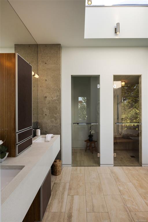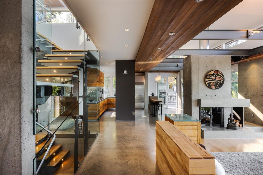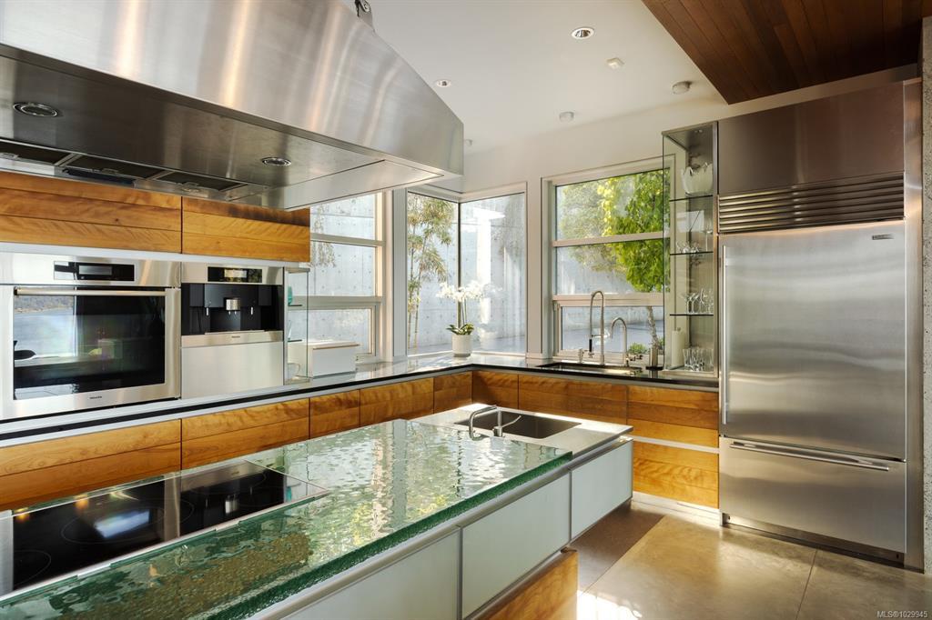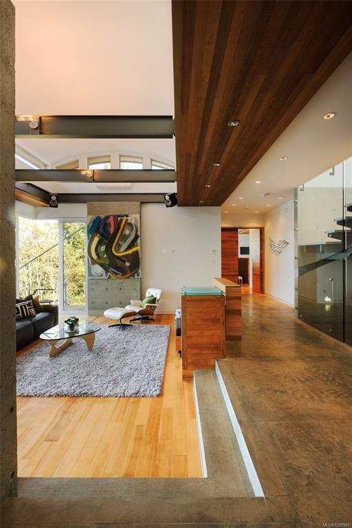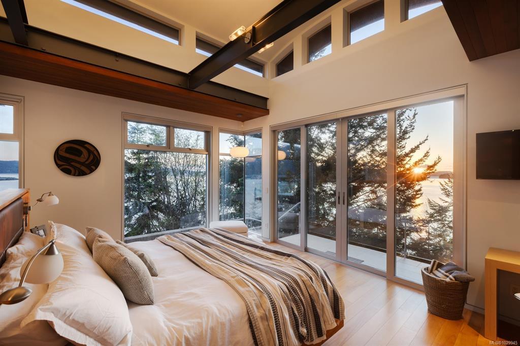 Oceanfront Masterpiece. Seldom does a home of this extraordinary, world class calibre come available. Perfectly sited on 1.59 private acres with 625' of ocean frontage, the steel & concrete residence offers panoramic ocean & island views from floor-to-ceiling windows. A flybridge extends from the living area, delivering front-row seats to an 82' infinity pool perfectly aligned for sunrises over Mt Baker to glowing ocean sunsets. Inside, sustainable geothermal heating warms polished concrete floors while wood finishes give warm hues in floating stairs, inlaid floors & custom cabinetry. A deluxe main-floor primary retreat has sweeping vistas & a spa-like ensuite. Lower level features guest suites, media room, wine cellar & poolside gym w/ retractable glass doors for seamless access.Upstairs, a family room is a quiet escape. The gourmet kitchen opens to an outdoor BBQ area with man-made stream & waterfall for natural ambiance."Cascadia" offers a seaside sanctuary near to all conveniences.