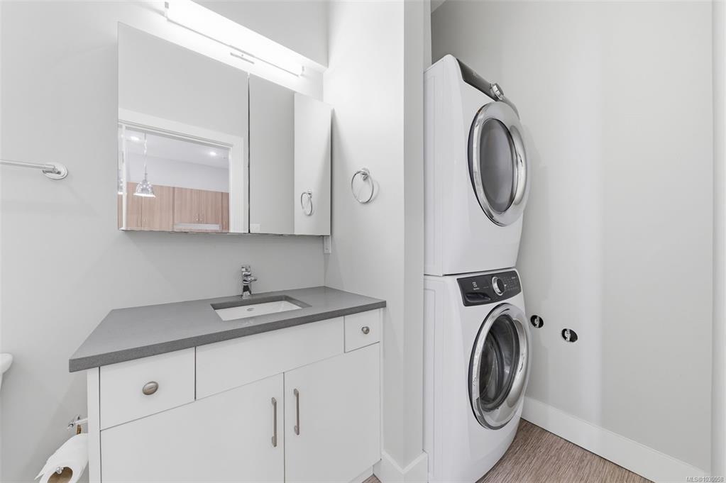 A rare opportunity to seamlessly blend home and business in one versatile property. Ideally located with excellent exposure just minutes from Hwy 1 and downtown Langford, this BT1-zoned space is designed for flexibility. The ground level offers a functional commercial shop complete with an entry foyer, large overhead door, wheelchair-accessible 2-piece bathroom, gas furnace, and capacity for 3-phase power equipment. Upstairs, a bright and modern 2-bedroom suite features an open-concept layout, stylish kitchen with breakfast bar, in-suite laundry, and impressive ceiling height. A heat pump provides efficient heating and cooling year-round. Whether you're an owner-operator looking for convenience or an investor exploring dual-income potential, this is a smart and adaptable opportunity.