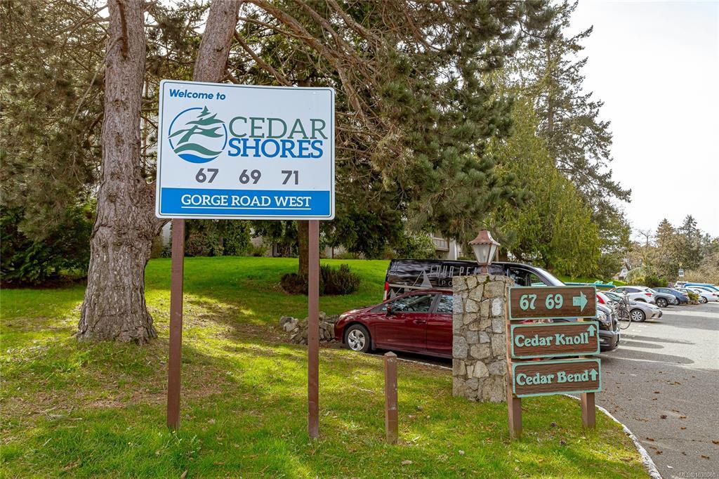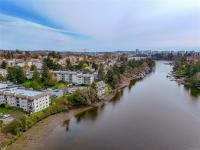 Opportunity knocks with this spacious 2 bed, 2 bath condo offering a fantastic layout and incredible potential. Welcome to waterfront living at Cedar Shores— An incredibly sought-after waterfront community along the Gorge Waterway. This large home is located on the quiet side of the building. The generous primary bedroom includes a walk-in closet with direct access to the full bathroom, while the second bedroom is ideal for guests, a home office, or added flexibility. The open Living & Dining areas connect to a great patio with nature right at your doorstep. Cedar Shores puts you steps from major bus routes with downtown Victoria, shopping, parks, and walking trails just minutes away. Enjoy exceptional amenities including an indoor pool, whirlpool, sauna, outdoor tennis court, additional recreational facilities, with storage for bikes and kayaks.