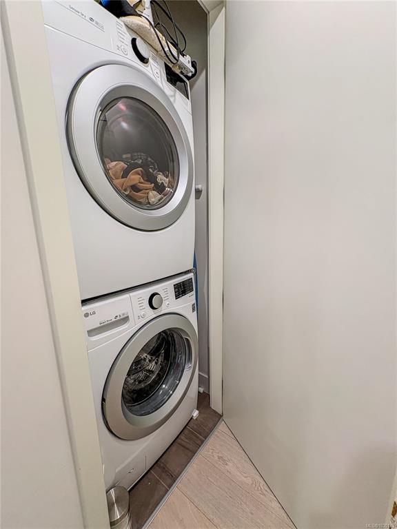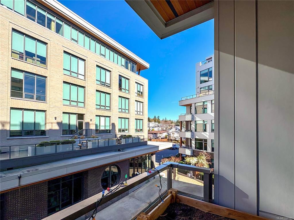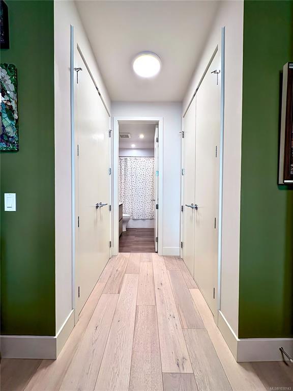 Esquimalt Town Square: a vibrant community in the heart of a welcoming neighbourhood w/shops, dining and cafés just steps away. Or, escape to nature on the Songhees Walkway or Saxe Point Park nearby. This spacious 1 bed, 1 bath home offers 775 sqft of beautifully finished living space. Over-height ceilings & expansive windows flood the home & eng. oak floors w/natural light, airy & inviting. The modern kitchen has ample storage & custom cabinetry, quartz counter & backsplash, stainless steel appliances, & gas range. The living room features a beautiful brick wall, custom built in shelving & desk & a cozy fireplace adding warmth & character. Step outside to your private covered deck w/a gas BBQ hookup. The primary suite offers double closets & cheater access to a luxurious 4 pc bath w/heated floors and deep soaker tub. Enjoy in-suite laundry, underground parking & storage, plus the strata fee covers heating, cooling, water, & gas making this home an exceptional value in today’s market.
