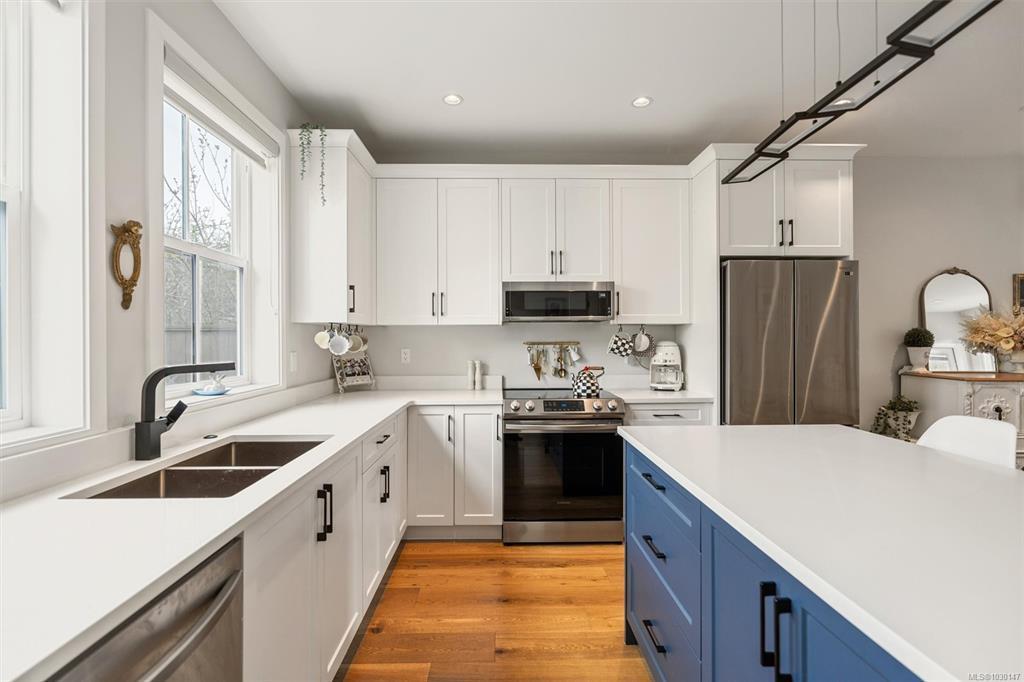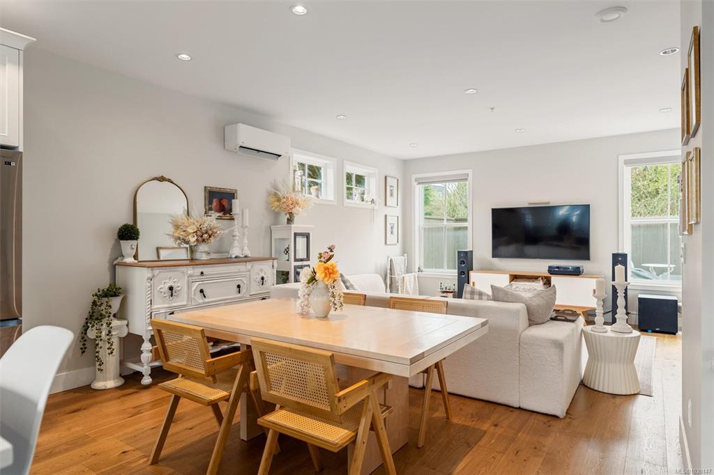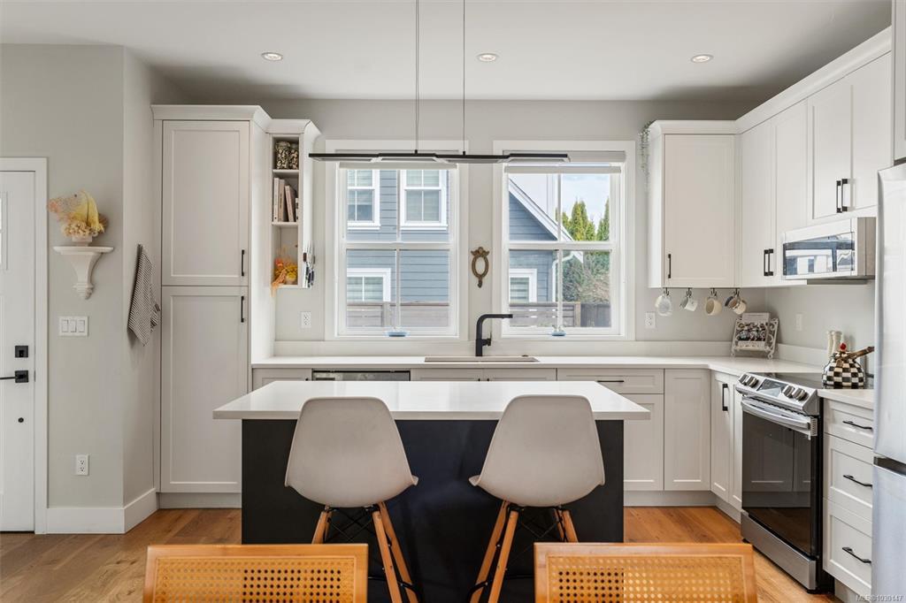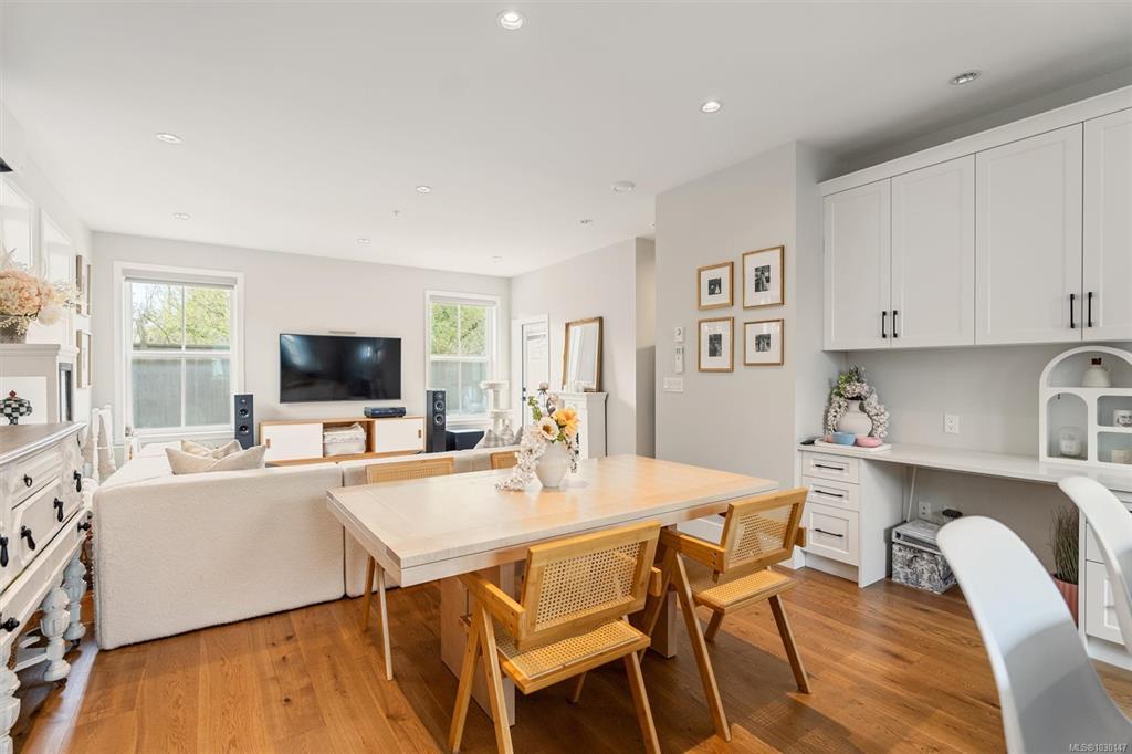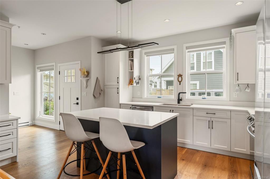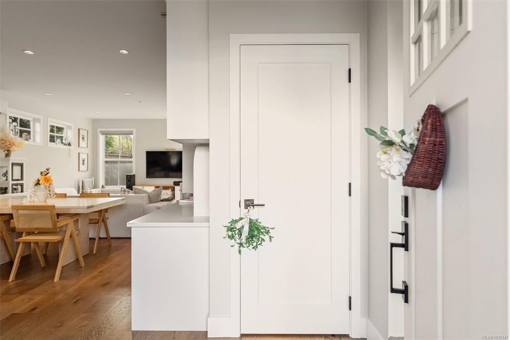 Welcome to Washington 8, a boutique collection by ZEBRA Design, set on a quiet, tree-lined street in the desirable Burnside Gorge neighbourhood. Built in 2022, this home offers the benefits of modern construction without the GST or wait. Ideally located just steps to Cecelia Ravine Park and the Galloping Goose Regional Trail, and only minutes to Downtown Victoria, you’ll enjoy easy access to nature, commuting routes, and everyday amenities. Inside, the home features level entry main floor living with a bright, open concept layout, a stylish kitchen with quartz countertops and island, and quality finishes throughout, plus a built-in office nook on the main floor. Upstairs offers 3 spacious bedrooms and laundry. An efficient heat pump provides year-round comfort, while the sunny patio, exterior storage, and access to a communal veggie garden plot add to the home’s functionality and sense of community. A fantastic opportunity to own a modern home in a super central location