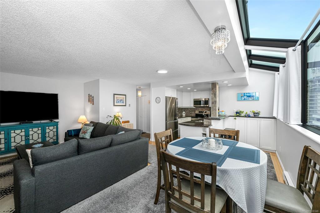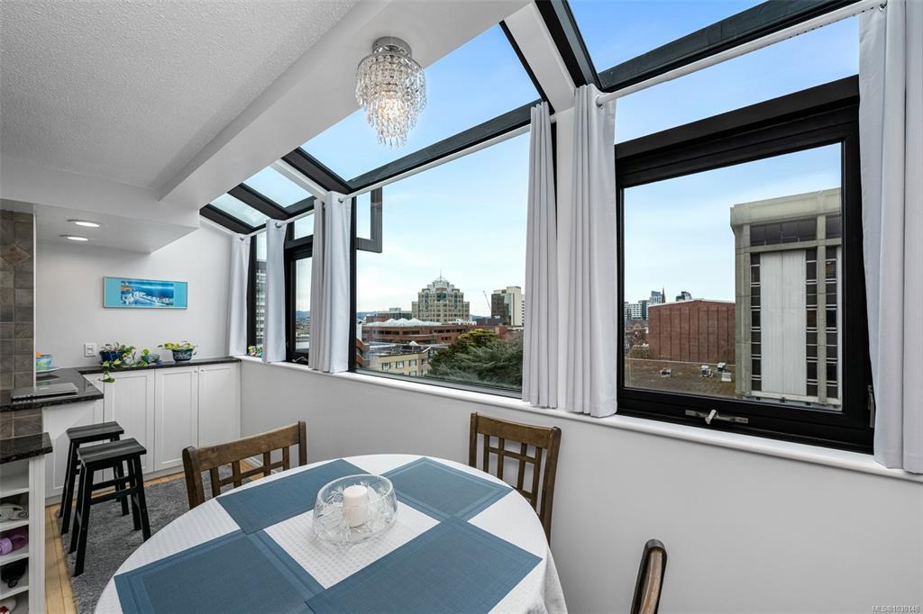 Come home to the Best of Victoria Every Day. Steps from the Inner Harbour, world-class dining, live theatre, and some of Victoria's most beloved parks and landmarks, this two-level downtown home puts the very best of the city right outside your door. This home welcomes you with a thoughtfully laid-out kitchen with tile accents, a generous living and dining area, a cozy fireplace, and a stunning glass ceiling that floods the dining space with natural light. Upstairs, you'll find the primary bedroom, a flexible guest bedroom that works equally well as a den or home office, a full four-piece bath, and in-suite laundry, everything you need to live comfortably in the heart of the city. The building itself is in excellent shape; remediation is fully complete; the strata carries a healthy contingency fund; and a brand new elevator. This is a building that's been well looked after, with the hard work already done. Request Full Access to All HDDR Photos, Interactive Floorplans & More.