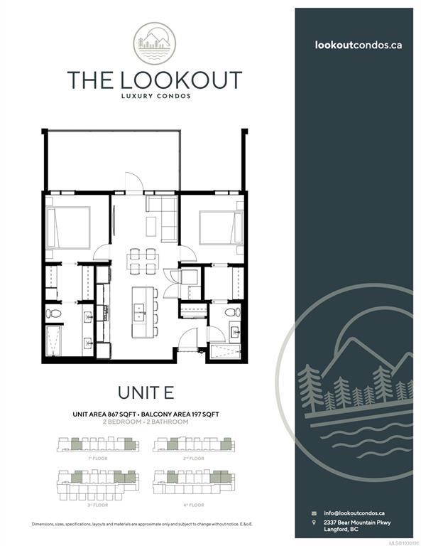 MOVE IN READY! SHOW SUITE now open 12-2pm (Thursday, Friday & Saturday) THE LOOKOUT by Aquila Pacific — luxury mountain living at its finest. Nestled among the trees, this community offers sweeping views of Florence Lake, Olympic Mountain Range & Mount Baker. Thoughtfully designed 1, 2 & 3 bedroom homes feature a premium integrated appliances & high-quality fixtures & finishes – no detail overlooked. Whether you’re after stunning views, convenient location, an amenity-filled building or larger units with patios, there’s a floor plan to suit every lifestyle - including select homes with massive patios & exterior access ideal for entertaining! Residents enjoy amenities not found in many buildings: lounge with test kitchen, outdoor patio & party room, observation deck, fitness studio + yoga room, bike-tuning area & pet-washing station. With quick access to the highway & Bear Mountain recreation,THE LOOKOUT blends the convenience of urban living with the tranquility of a mountain retreat.