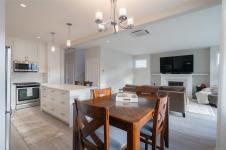 Built in 2021 and just under 2,000 sq ft, this home offers a flexible layout with plenty of options. The primary bedroom is conveniently located on the main level, with three additional bedrooms upstairs—ideal for kids, guests, or home office. The bright, open-concept living, kitchen, and dining area feels spacious and welcoming, featuring quartz countertops and modern finishes throughout. A ductless heat pump provides efficient cooling in summer and cozy warmth in winter for the main living area and primary bedroom (with heated ensuite flooring). The home also includes an attached double garage (inc epoxy finished flooring), three bathrooms, hot water on demand, and a 5 ft crawl space for all the things you swear you’ll organize someday. The fenced backyard offers a shed and space to enjoy the outdoors. Centrally located near the hospital, shopping, schools, and with easy access to the Parkway.