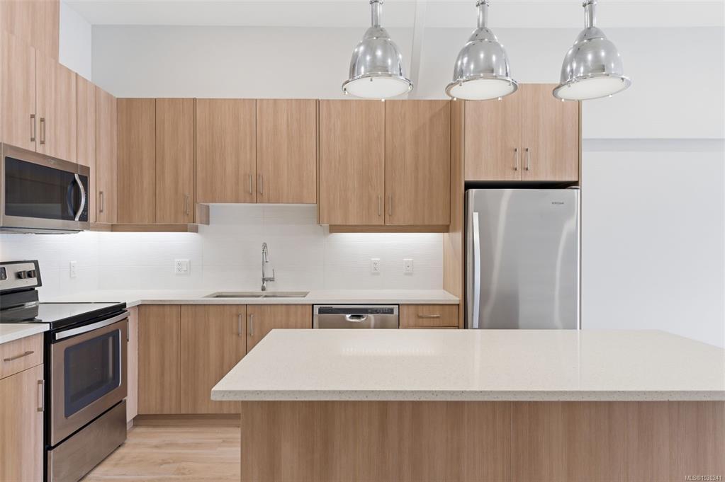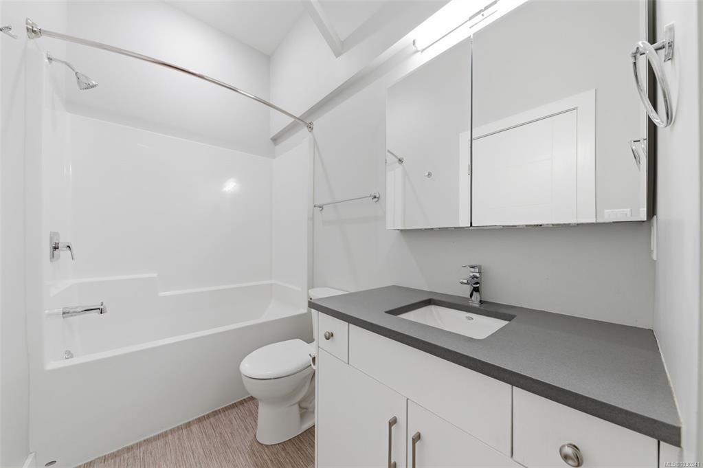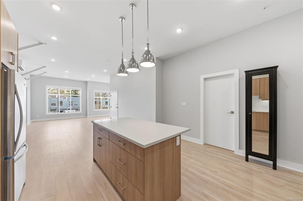 A rare opportunity to seamlessly blend home and business in one versatile property. Ideally located with excellent exposure just minutes from Hwy 1 and downtown Langford, this BT1-zoned space is designed for flexibility. The ground level offers a functional commercial shop complete with an entry foyer, large overhead door, wheelchair-accessible 2-piece bathroom, gas furnace, and capacity for 3-phase power equipment. Upstairs, a bright and modern 2-bedroom suite features an open-concept layout, stylish kitchen with breakfast bar, in-suite laundry, and impressive ceiling height. A heat pump provides efficient heating and cooling year-round. Whether you're an owner-operator looking for convenience or an investor exploring dual-income potential, this is a smart and adaptable opportunity.