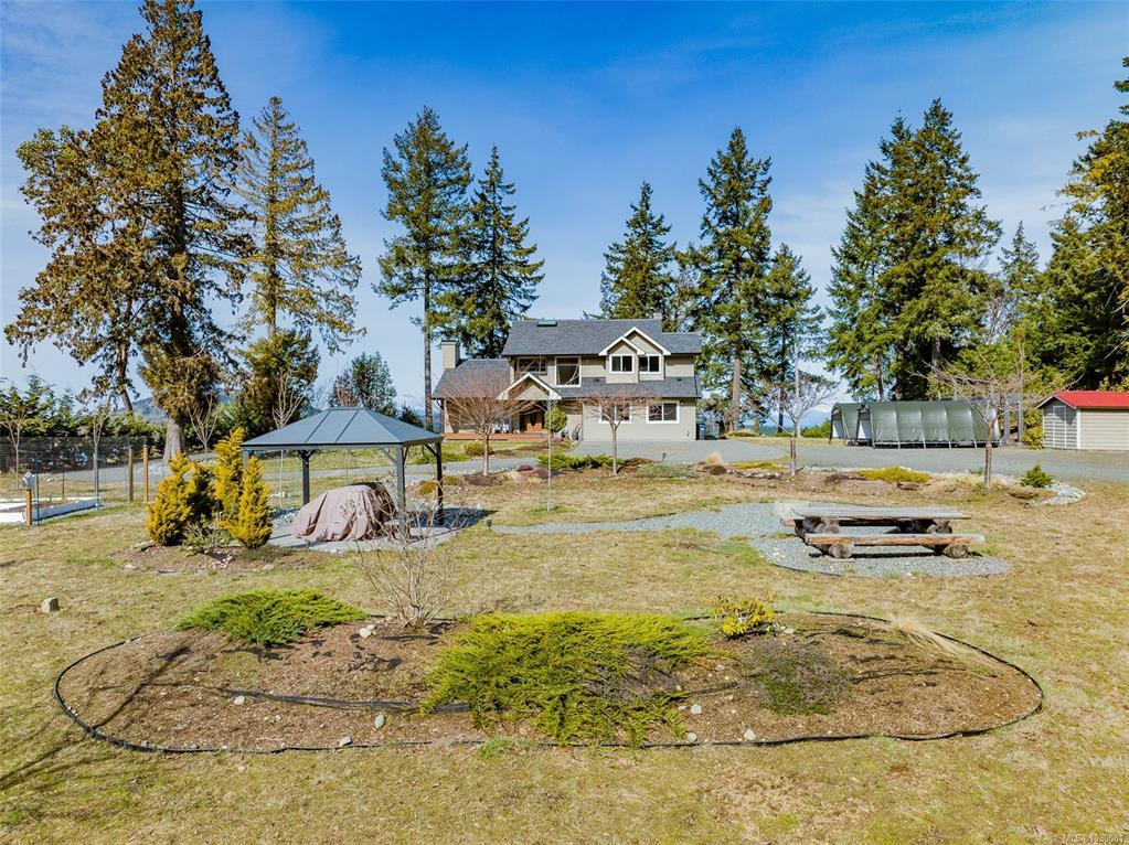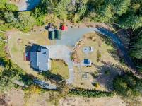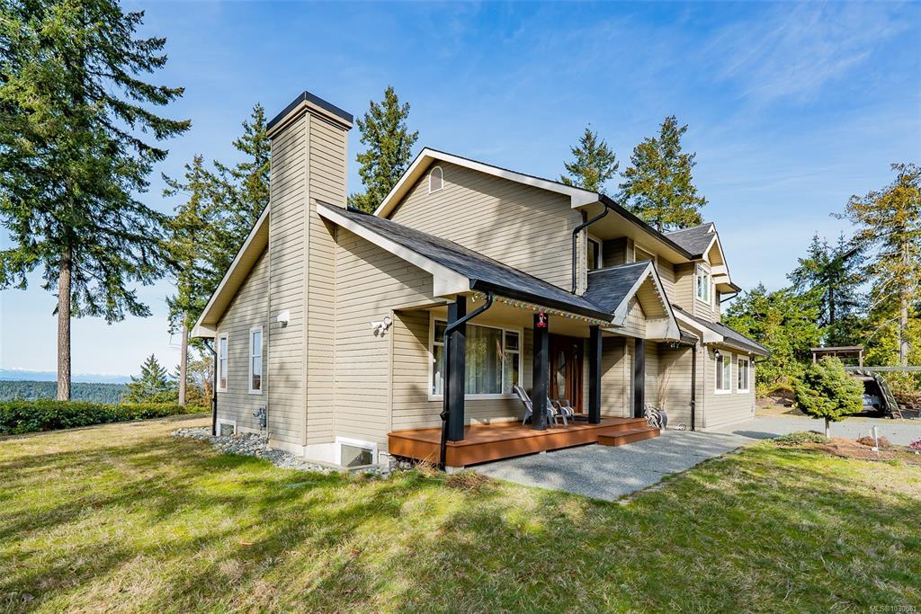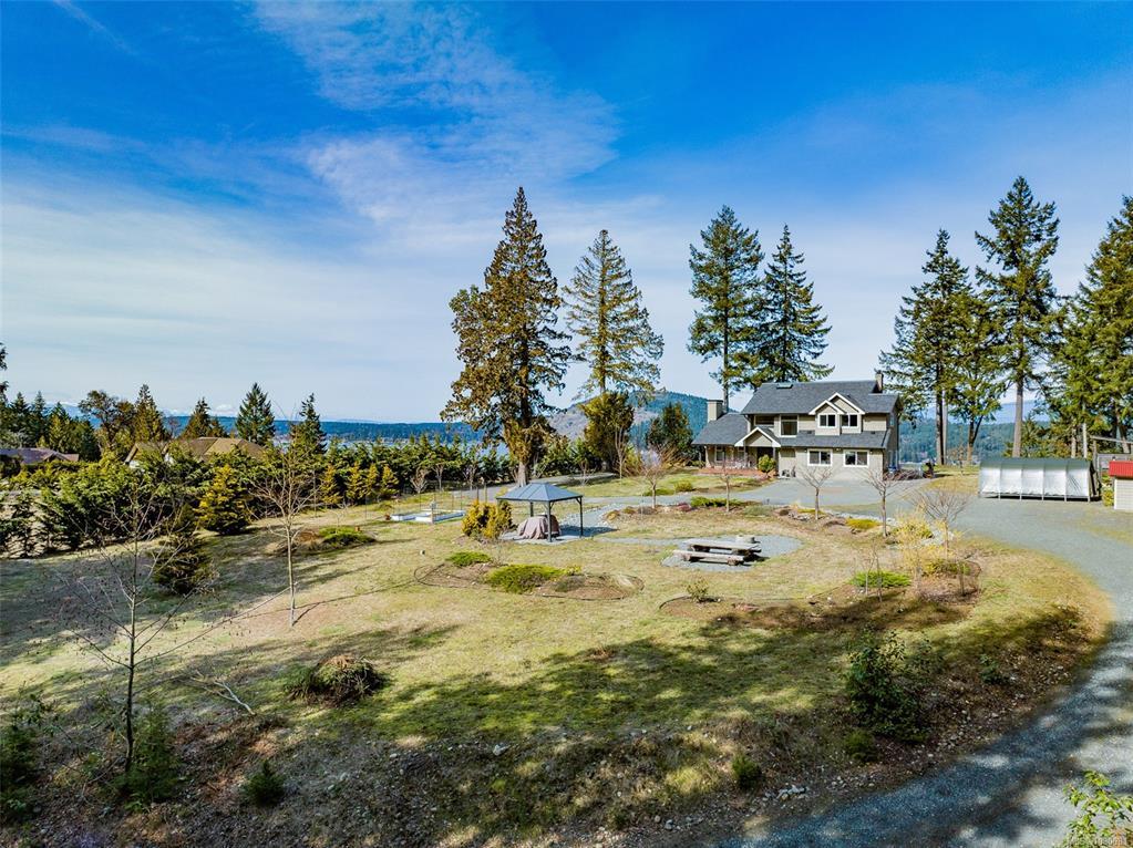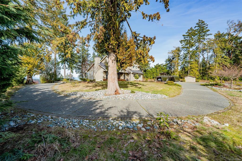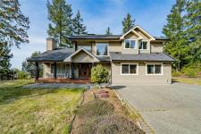 Hilltop Estate with Unmatched Privacy & Panoramic Views, 2.5-acre, exceptional property offers an expansive, usable flat plateau—a rare blend of elevation and functionality. Ideally with dual access via Southwind Drive & Lorenzen Lane, it provides unique flexibility for future development. Located 8 mins from Costco and Woodgrove, the estate balances peaceful seclusion with urban convenience, steps from Copley Ridge trails for hiking & biking. Surrounded by mature trees with no visible neighbors, this sanctuary is perfect for private gatherings and open fires. Enjoy breathtaking panoramas of Nanoose Bay and Copley Ridge, featuring magical sunsets over the water. Recent updates include a permitted kitchen (2019), studio (2016), 2025 water heater, and fresh paint. Forced-air heating and AC ensure year-round comfort. Within the Seaview/Dover Bay catchment with bus service and near Aspengrove School, the property offers huge potential for a carriage house or subdivision (buyer to verify).