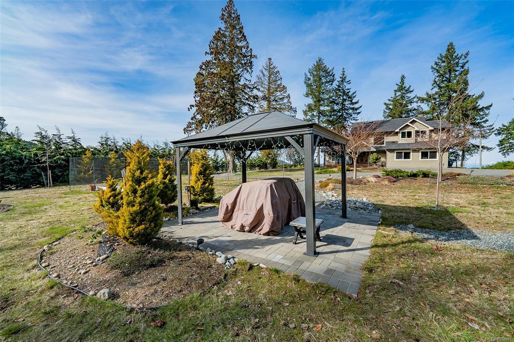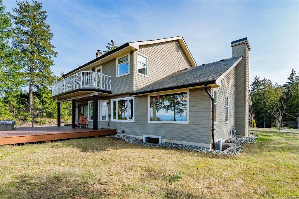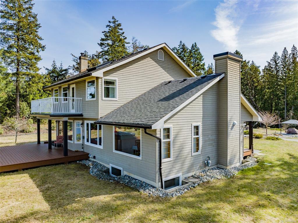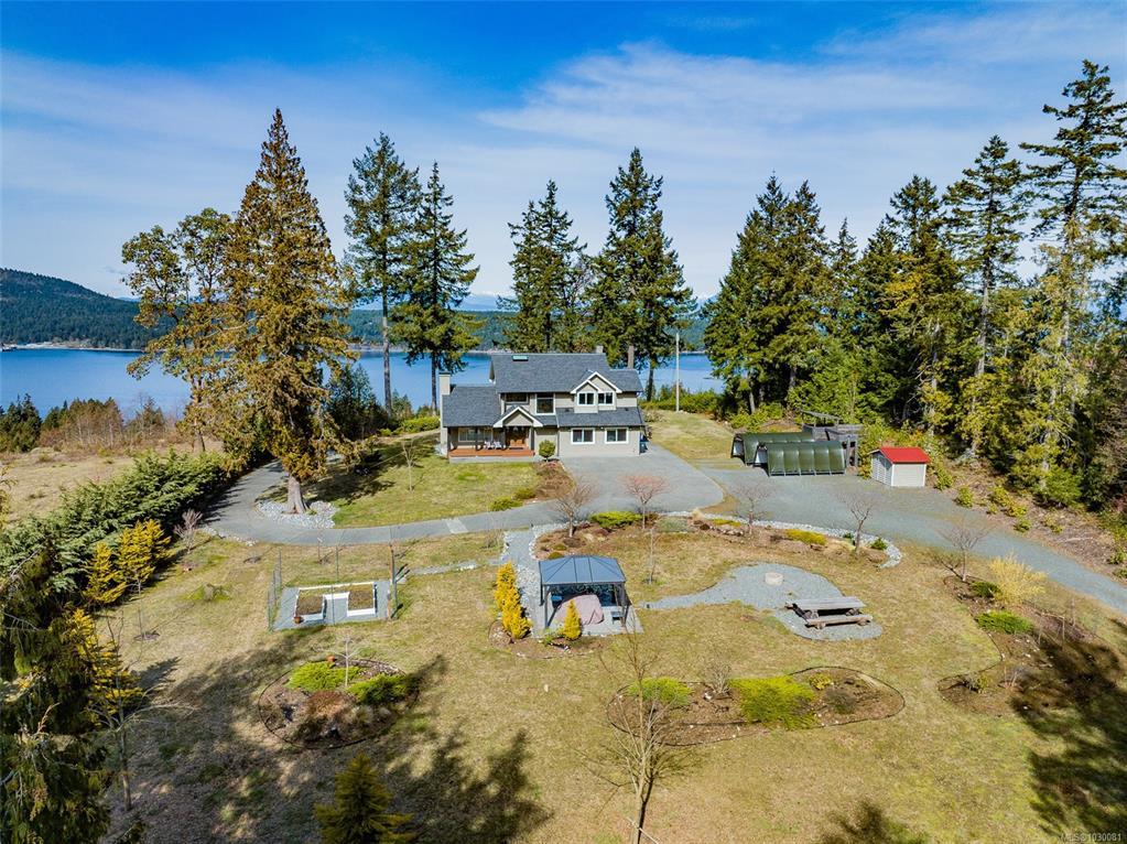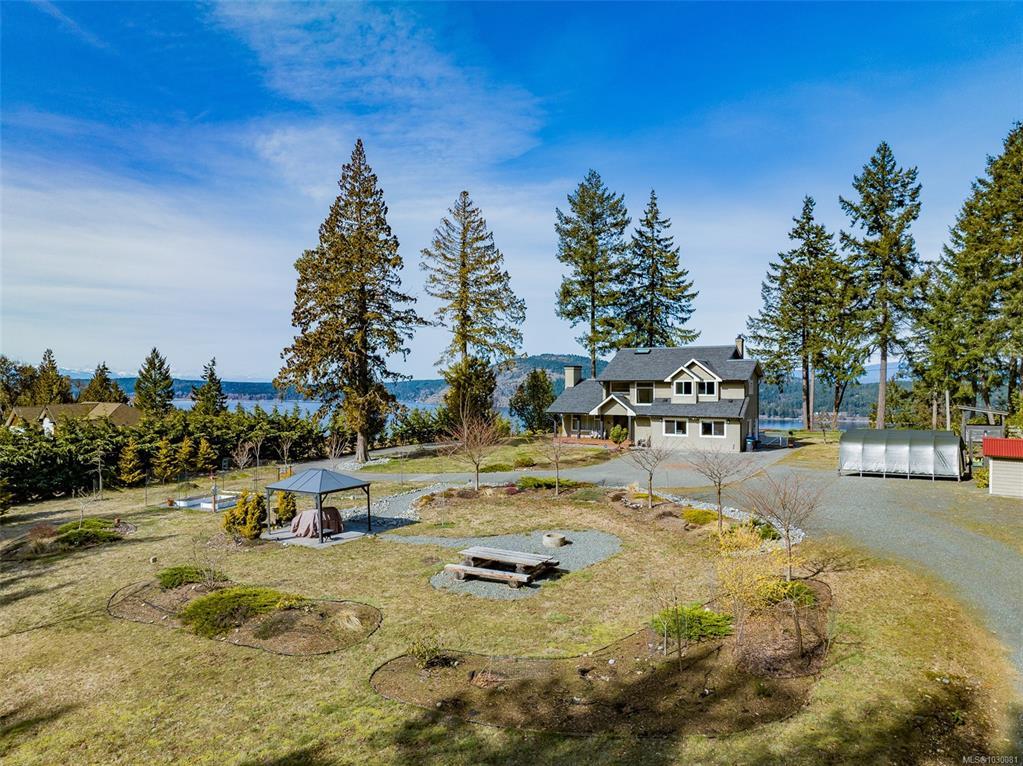 Hilltop Estate with Unmatched Privacy & Panoramic Views, 2.5-acre, exceptional property offers an expansive, usable flat plateau—a rare blend of elevation and functionality. Ideally with dual access via Southwind Drive & Lorenzen Lane, it provides unique flexibility for future development. Located 8 mins from Costco and Woodgrove, the estate balances peaceful seclusion with urban convenience, steps from Copley Ridge trails for hiking & biking. Surrounded by mature trees with no visible neighbors, this sanctuary is perfect for private gatherings and open fires. Enjoy breathtaking panoramas of Nanoose Bay and Copley Ridge, featuring magical sunsets over the water. Recent updates include a permitted kitchen (2019), studio (2016), 2025 water heater, and fresh paint. Forced-air heating and AC ensure year-round comfort. Within the Seaview/Dover Bay catchment with bus service and near Aspengrove School, the property offers huge potential for a carriage house or subdivision (buyer to verify).