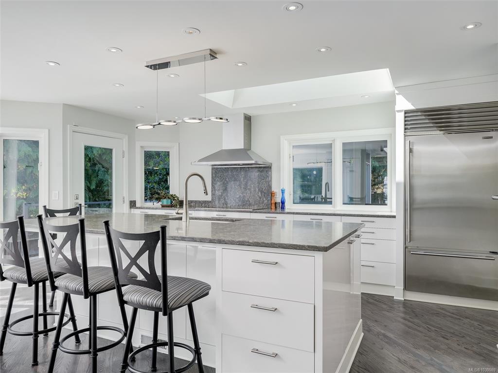 OPEN SUN 10-11:30 Beautifully reimagined from top to bottom, this exceptional home blends contemporary style with upscale finishes and thoughtful design. The three-level layout offers an ideal family floor plan, featuring a generous sundeck, a chef’s kitchen, and bright, open living and dining spaces that are perfect for both entertaining and everyday comfort. The lower level includes a stylish, self-contained suite—ideal for guests, extended family, or multi-generational living. Outside, the private property is enhanced by professionally designed landscaping, complete with ambient lighting, irrigation, stonework, and custom-built fencing and gates. Take in tranquil water views from a location just steps to sandy beaches, parks, and close to the UVic campus. This home seamlessly combines classic architectural charm with modern upgrades such as smart lighting, built-in sound, RV power, EV charger readiness, generous storage, expansive windows, and a premium DaVinci composite slate roof.