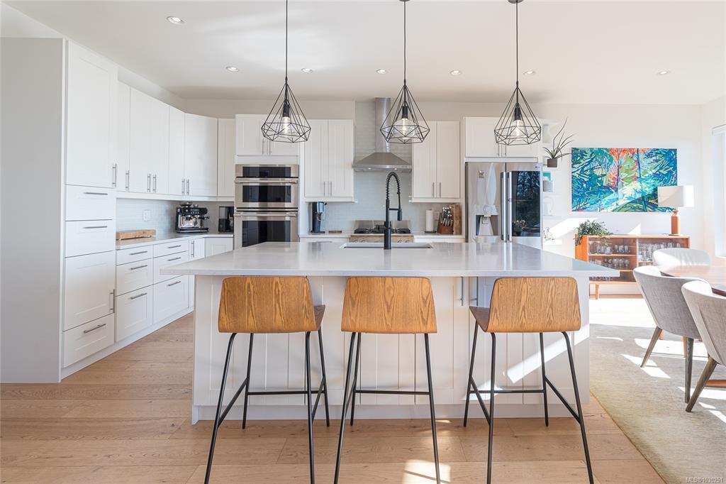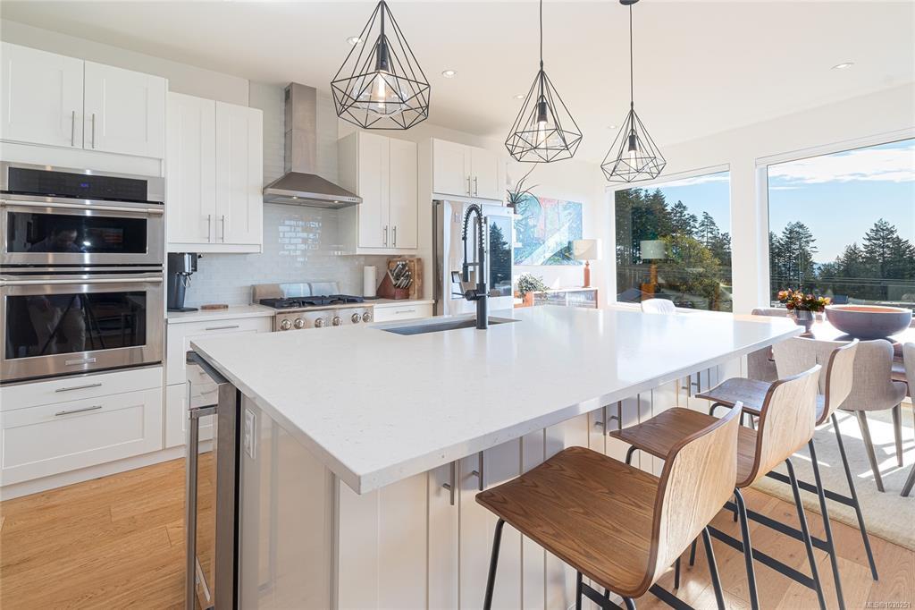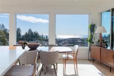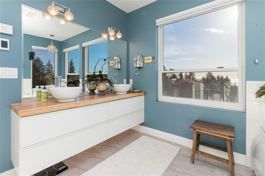 Perched in sought-after Royal Bay, this 2019-built home offers unobstructed ocean views from all three levels and over 3,900+ sq ft of thoughtfully designed living space. The main home features a bright, open-concept layout with expansive windows, a redesigned living room fireplace, and seamless access to an extended wrap-around balcony—perfect for taking in the views. A self-contained 1-bedroom suite adds flexibility for family or rental income. Hobby Rm down could be another bedroom, making it a 5 Br. home. Extensive upgrades include 9 new windows (3 opening for airflow), motorized blinds throughout, Toto toilets in 4 bathrooms, a new heat pump in the suite, and a top-of-the-line sewage treatment system. Outside, enjoy new landscaping, fencing, and retaining wall improvements. Located in a vibrant coastal community with beaches, parks, trails, and growing amenities, this is West Coast living at its finest.