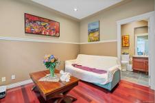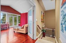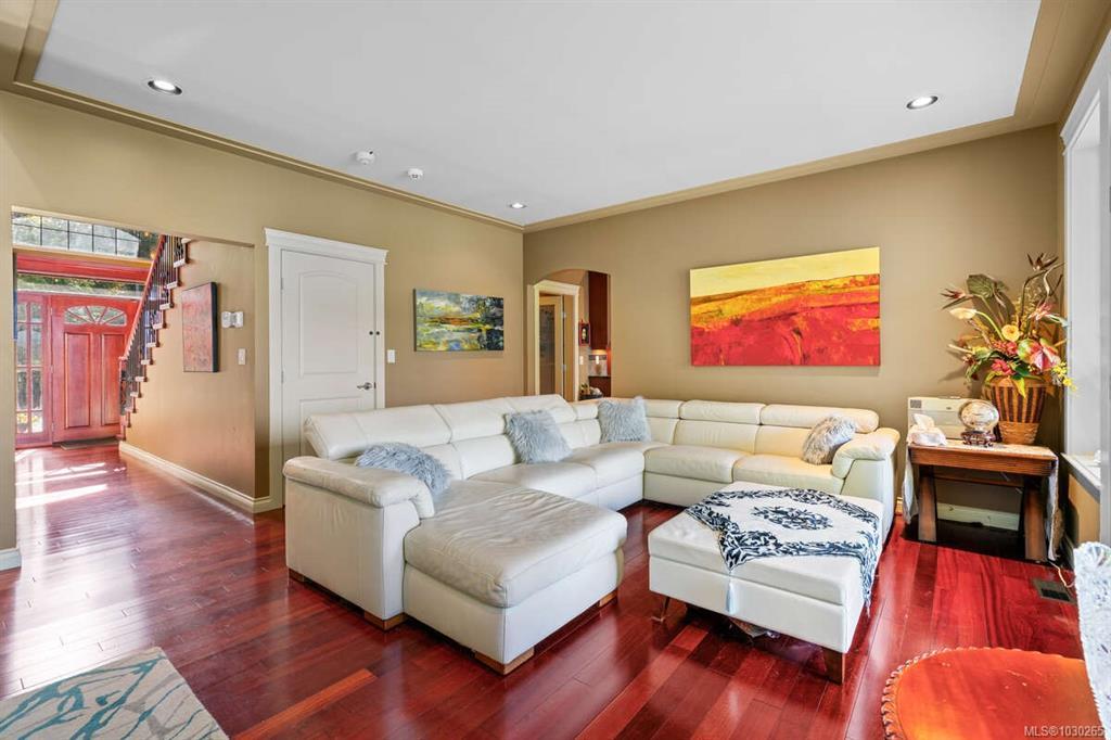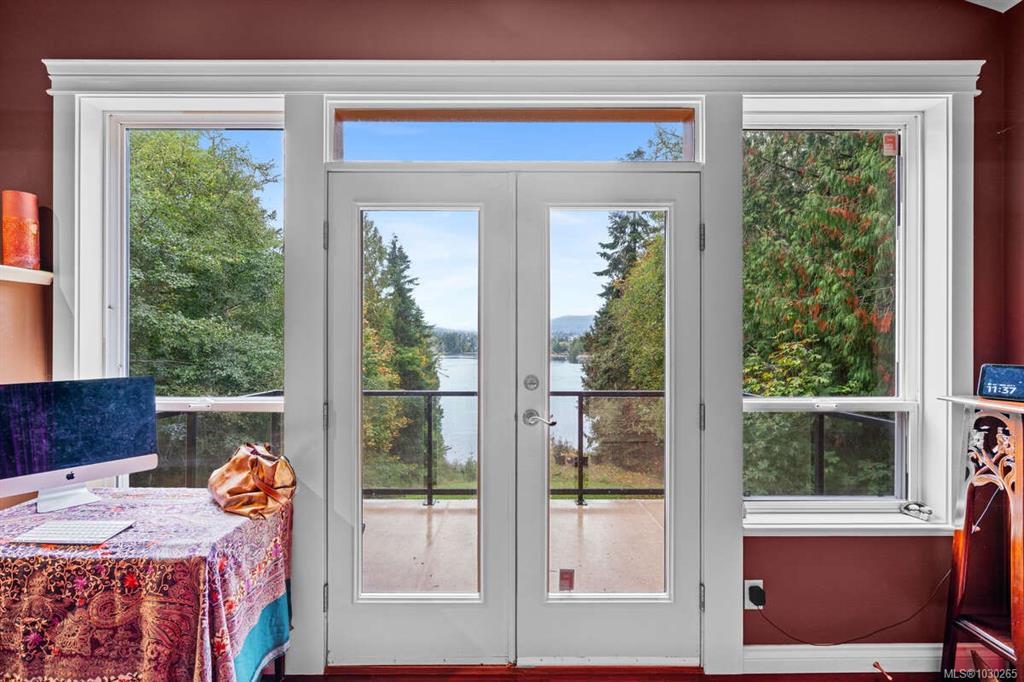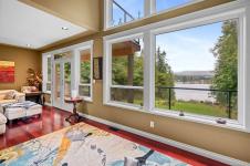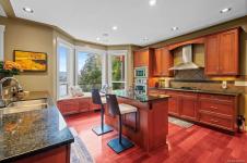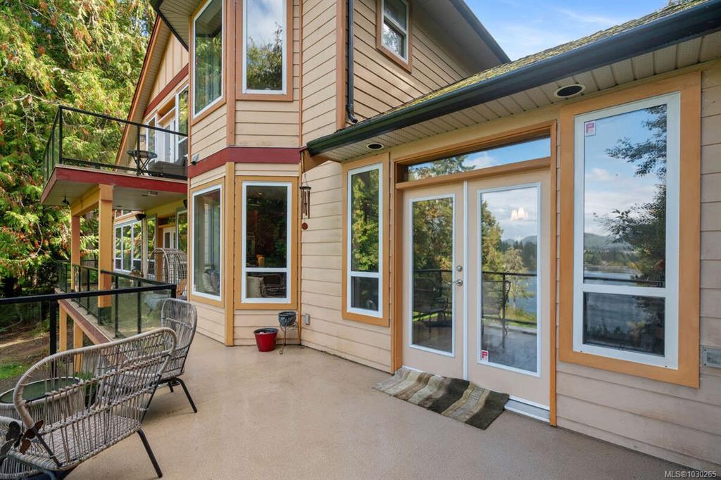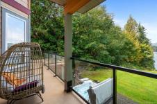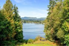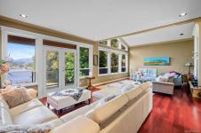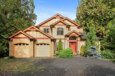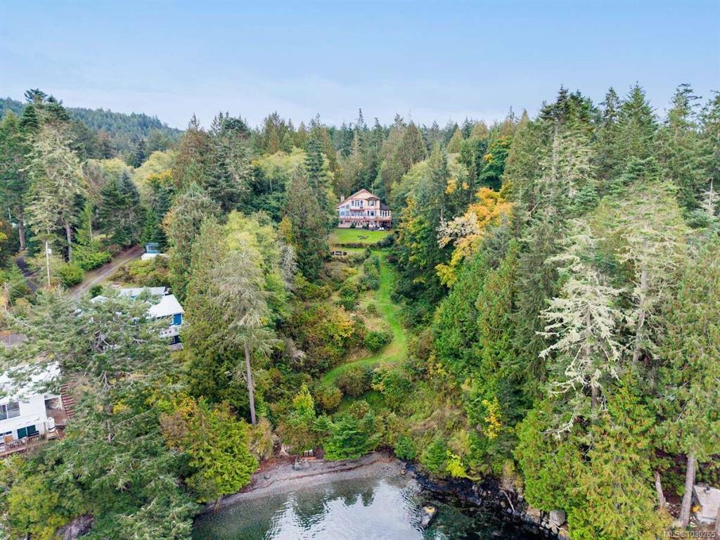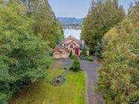 Waterfront small private acreage surrounded by towering trees and a beautifully forested setting, featuring an alcove-style pebbled beachfront and direct path to the ocean. This custom-built family home includes separate, fully self-contained living accommodations across three levels. A stunning cathedral-style entrance with soaring 23-ft ceilings, double crown moulding, and large bay windows creates a grand first impression. The home features Ubatuba granite countertops, 3/4" Argentine cherry hardwood flooring on the main and upper levels, and a double-sided Oracle wood fireplace. Architectural highlights include octagon design elements, vaulted and over-height ceilings, and a dual-control surround sound system. The property is equipped with underground wiring, eco-friendly irrigation and septic systems, and a 400-amp electrical service with a 100-amp sub panel.