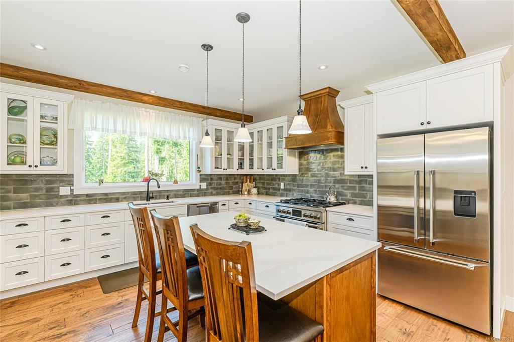 Why pay Victoria prices for less space? Stunning 2021 custom home in Woodland Shores, Lake Cowichan, offers panoramic lake & mountain views just steps from the water. Set on a landscaped corner lot, it features exposed beams, engineered hardwood, and $100K+ in custom cabinetry. Main level: 2 beds/2 baths with spa-style primary suite. Lower level: 1 bed/1 bath, roughed-in kitchenette for suite potential. Outdoor entertaining shines with irrigation, lighting, BBQ & fire pit hookups. Rare 3-bay workshop with bath, 12’ RV door, and ample boat/RV parking. Move-in ready with modern finishes, offering privacy and tranquility in this exclusive lakeside community. Steps to marina, trails & year-round lake recreation — luxury lake lifestyle at a fraction of Victoria prices. Rare opportunity — don’t miss out! (25 min to Duncan, ~1 hr to Victoria)
