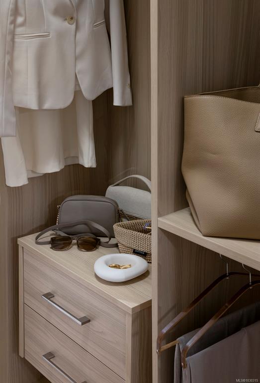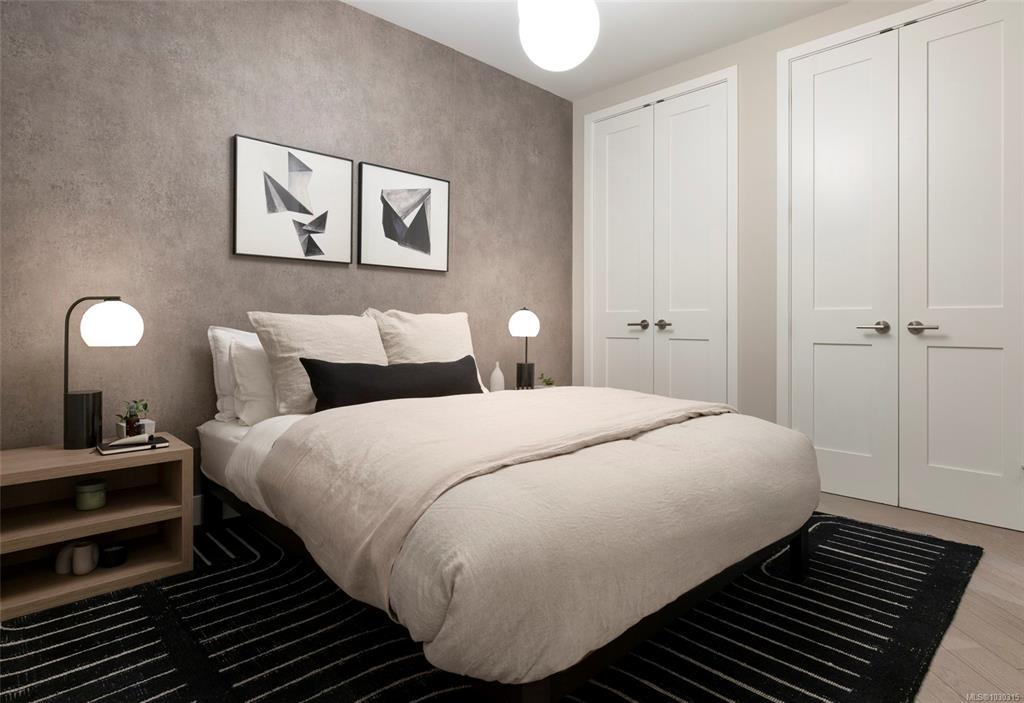 Located just steps from the water’s edge in Esquimalt’s Saxe Point neighbourhood, Oakwoods is the heart of a master-planned community over a decade in the making. Surrounded by coastline and minutes to Downtown Victoria, it offers a lifestyle rich in character and convenience. This 2 bed/2 bath home features 9'7" ceilings, 8' interior doors, and herringbone-patterned engineered oak flooring. An expansive folding glass window wall opens to a spacious balcony, seamlessly extending your living space. A subtle level change adds architectural interest, with bedrooms overlooking the main living area. The chef-inspired kitchen boasts GE Monogram appliances, a 5-burner gas cooktop, Italian ash cabinetry, ample storage, and a built-in desk. The living room is anchored by a brick feature wall with electric fireplace. Enjoy geothermal heating and cooling, a fitness centre, and beautifully landscaped European-style courtyards. Move-in ready!