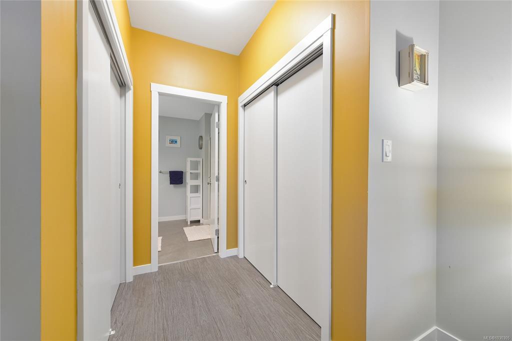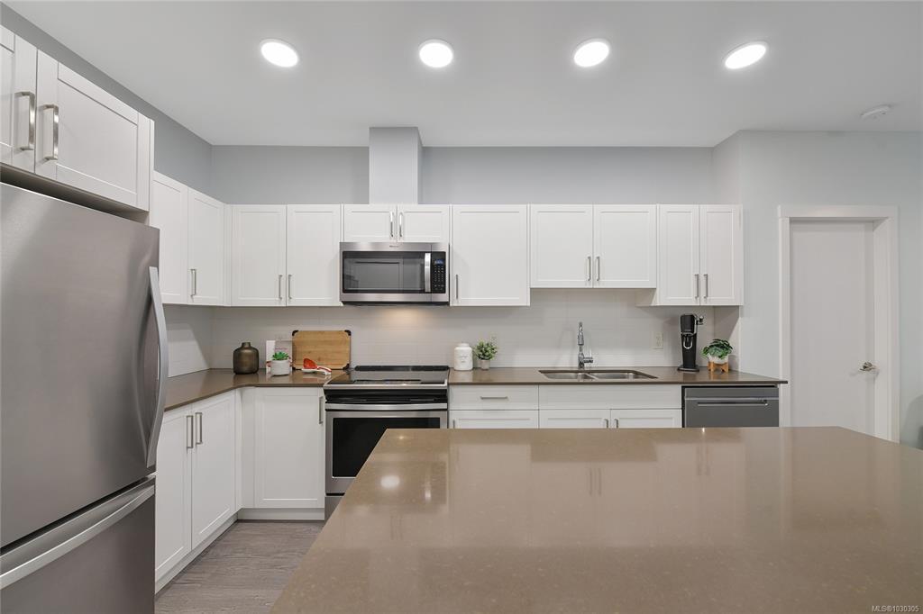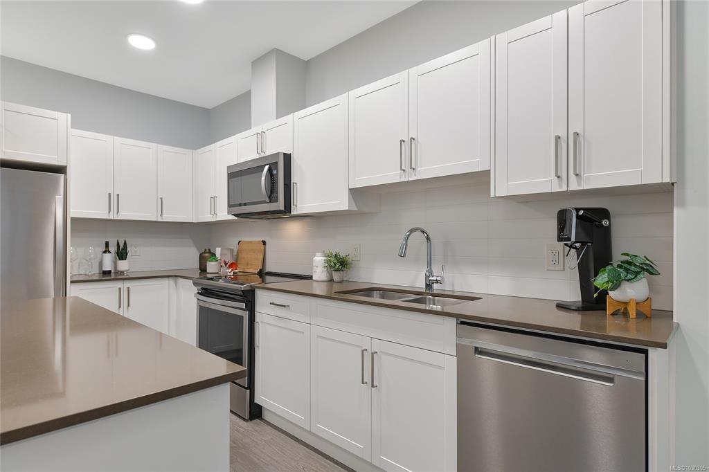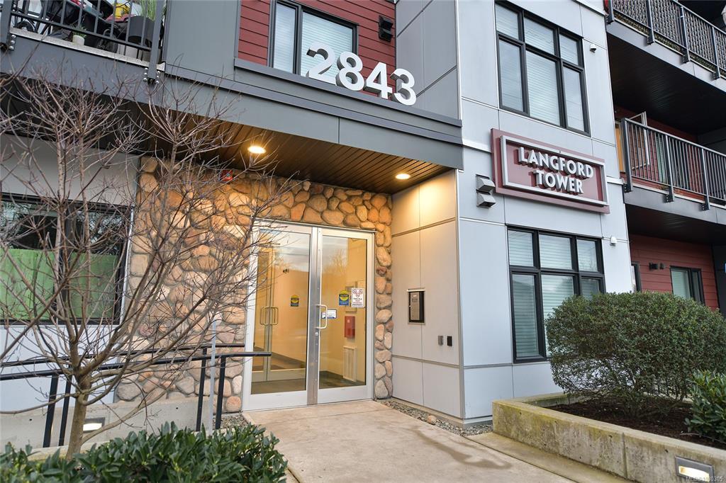 TWO BEDROOM PLUS LARGE DEN! Step into a tastefully designed floor plan. The primary bedroom is a true retreat, featuring a walk-through closet and a 3-piece ensuite. On the opposite side of the unit, the well-appointed second bedroom includes a convenient built-in Murphy bed, making it ideal for guests or flexible use of space. A 4-piece guest bathroom with a shower/tub combo adds extra convenience. A generous den/office provides valuable bonus space- perfect for working from home, hobbies, or additional storage. The home also includes in-suite laundry for everyday ease. The modern kitchen is equipped with stainless steel appliances, a large island, and plenty of workspace, making it a welcoming hub for cooking and gathering. The Langford Tower building is conveniently located in the City of Langford close to everything the Westshore lifestyle has to offer including shops, dining, the Galloping Goose Trail, transit, hikes, activities and all major amenities! Book your appointment now!
