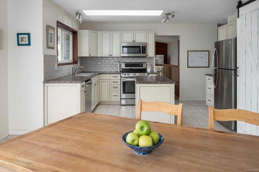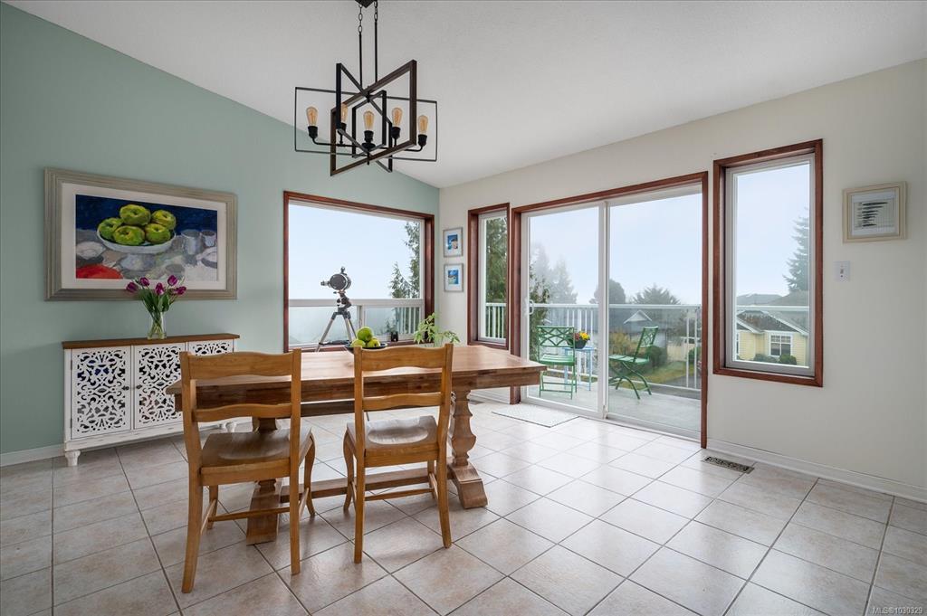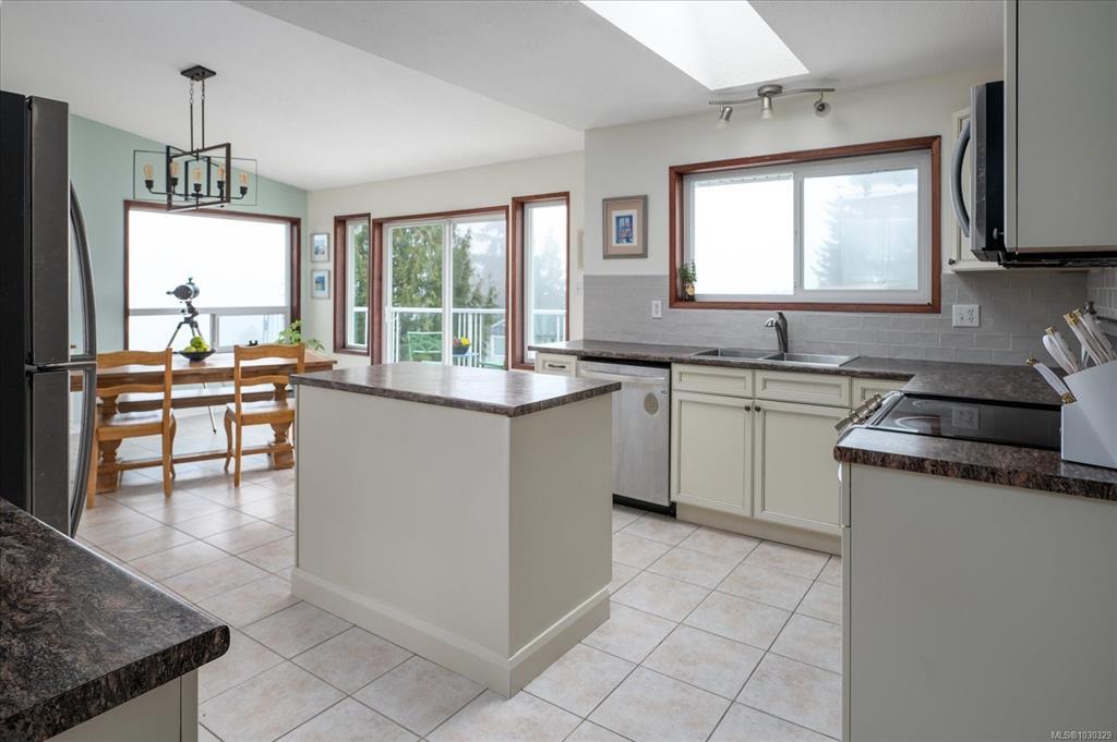 Enjoy panoramic ocean and mountain views from the expansive eat-in kitchen of this well-maintained home. Major updates: new electrical panel (2023), fresh paint, and high-efficiency heat pump/furnace/AC (2025). Within walking distance of the beach, parks and schools. A short drive to the hospital, shops and restaurants. Set on a large, level lot backing directly onto parkland, the property offers a spacious backyard with exceptional privacy and no neighbours behind. Inside, vaulted ceilings in the kitchen, living room and primary bedroom create a bright, open feel. The first floor includes a full kitchen and independent living space, making this home an excellent option for large families, multi-generational living or in-law accommodation. Close to beach trails, Linley Valley trails, Neck Point Park, Pipers Lagoon, Woodgrove Centre, and the ferry. A rare combination of privacy, breathtaking views and lifestyle flexibility in one of Nanaimo's premier neighbourhoods.