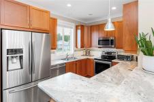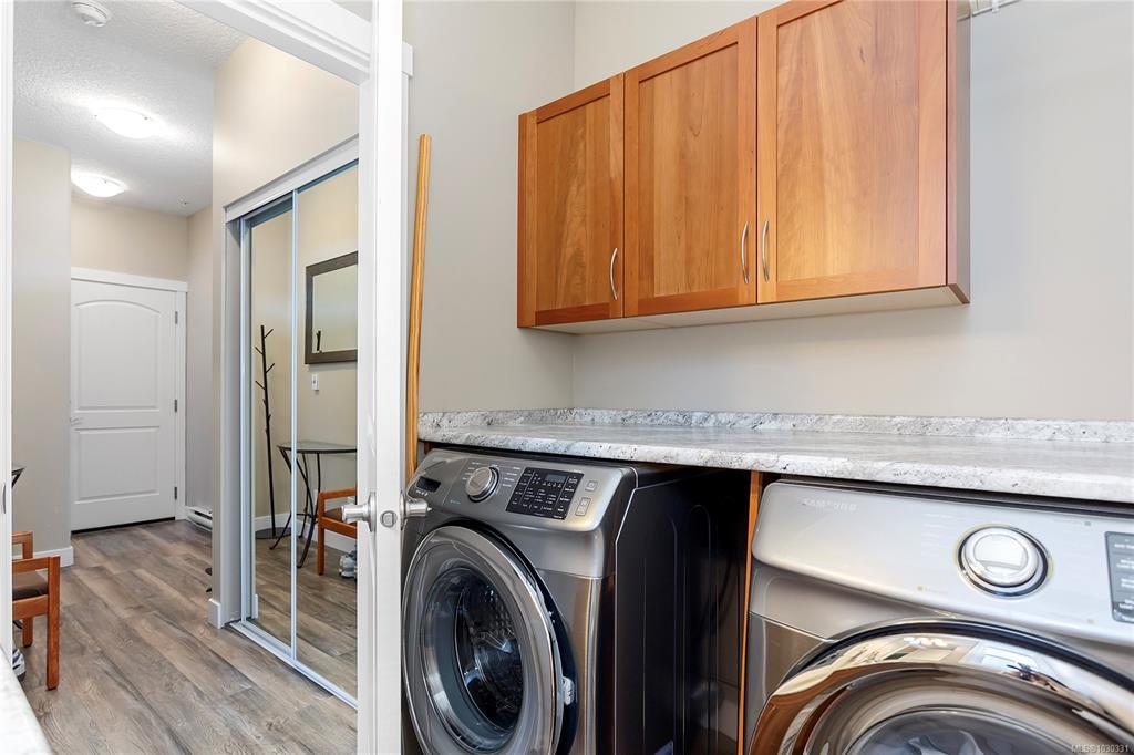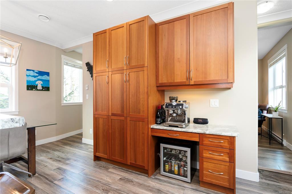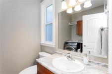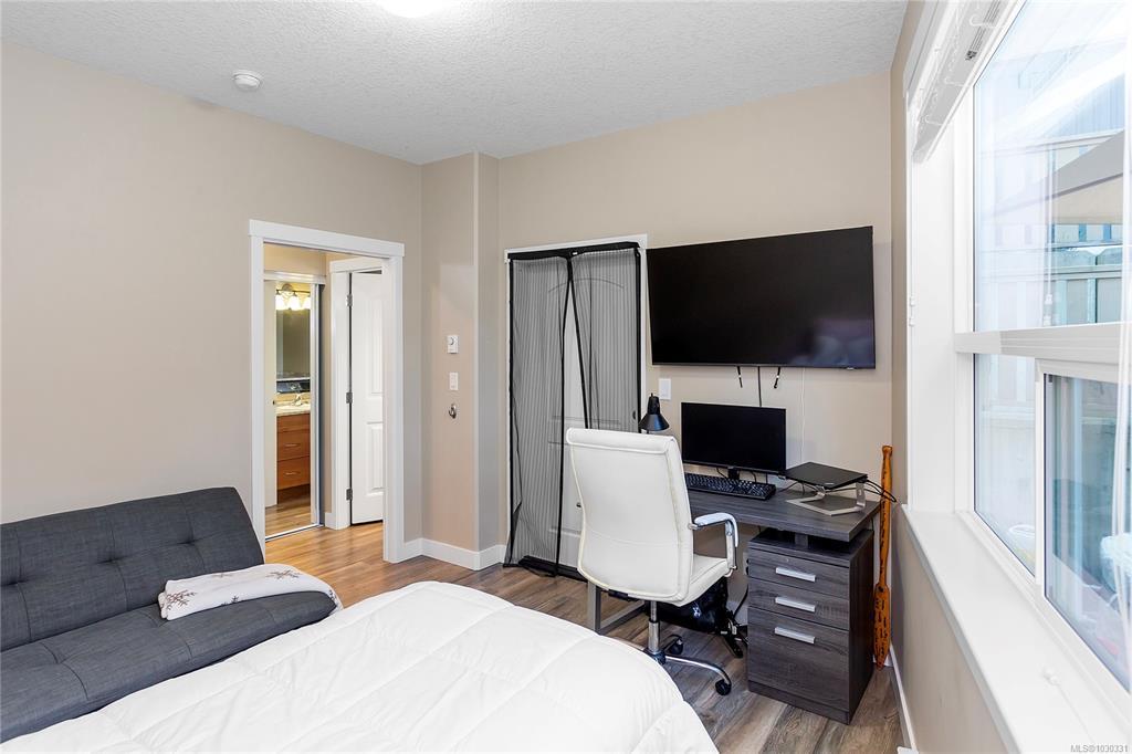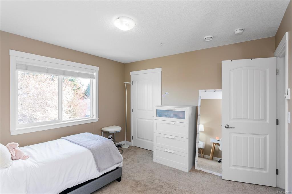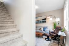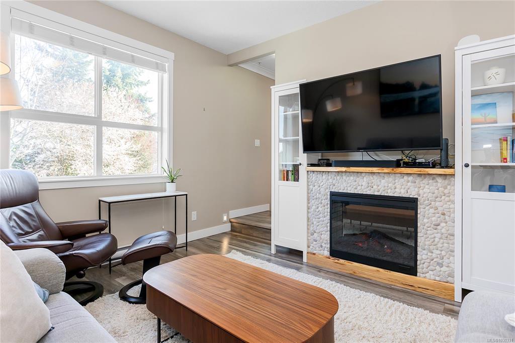 This beautiful end-unit townhome in North Nanaimo is perfect for first time buyers, growing families or empty nesters! Backing onto a quiet green space and a creek, this home benefits from a large, super private, ground level patio. Back inside you'll find that this 2016 build has a flexible layout that could work for almost anybody. Two bedrooms on the top floor, including the primary with a walk out, mountain-view balcony, as well as a 4-pc bathroom. The Main floor is naturally bright with big windows and flows seamlessly from the living room to the dining area and into the kitchen featuring cherry cabinets, ample storage and slide out pantry cupboards. The entry level includes the homes 3rd bathroom as well as the laundry area, and a 3rd bedroom that could easily be used as an office or family room. This room walks out to the large back patio area, stretching nearly 20' and bordered by mature trees, green space and a peaceful creek. You'll love living in the Parkwood neighbourhood!