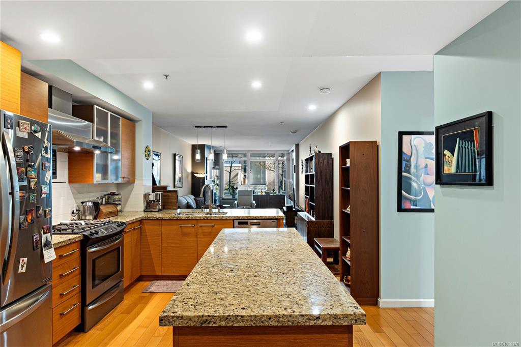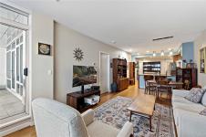 A spacious courtyard unit in desirable Pacifica! This 2 bed, 2 bath condo features a generous kitchen with gas range and large island opening into a dining space that will easily accommodate a full sized dining table. The living room has floor to ceiling windows and features a gas fireplace. The oversized primary bedroom allows for a sitting area or office. An ensuite and walk in closet complete this luxury retreat. Air conditioning in the living and primary ensure year round comfort. Both the primary and the living room have access to a covered patio which extends your living space year round. Opening onto the courtyard, this home has easy access to the waterfront promenade. Pacifica offers concrete construction, underground secured parking and bike storage, on site management & caretaker, and a storage locker located on the same floor as the unit. The building is pet friendly (No size limit on dogs!) and the strata fee includes gas for your fireplace, cooking stove, and BBQ.