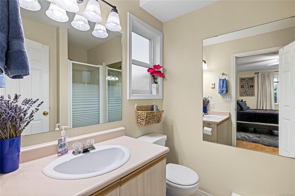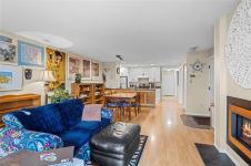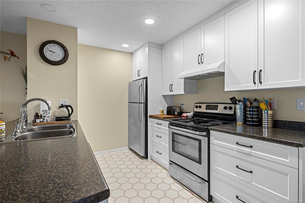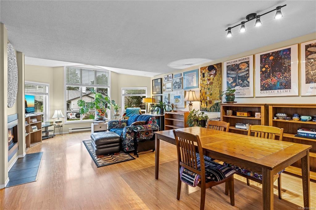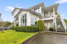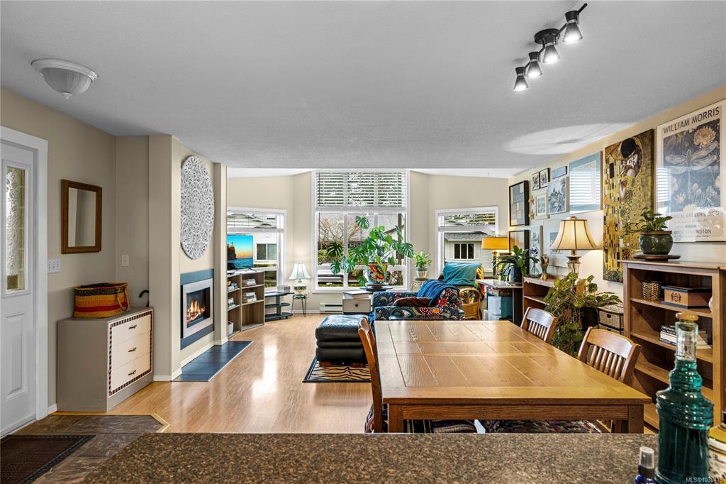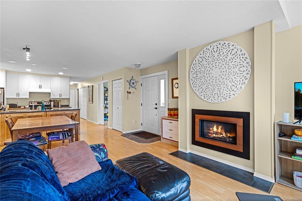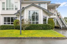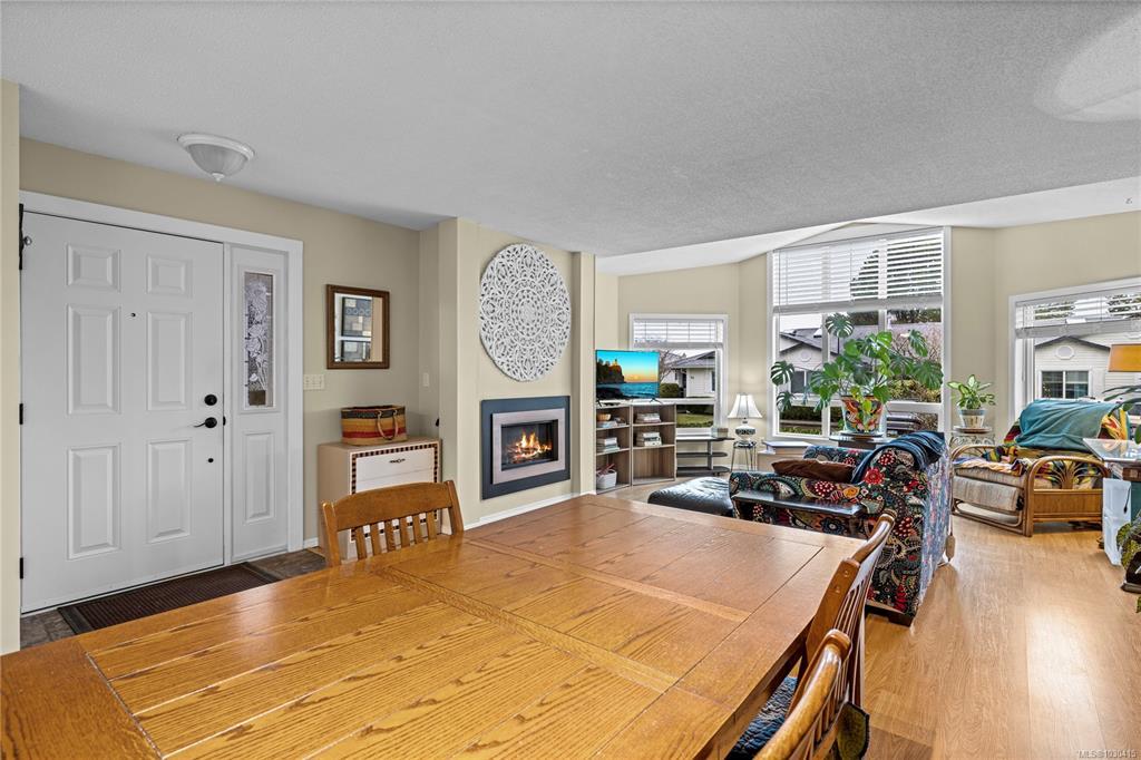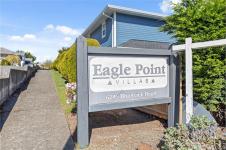 Welcome to Eagle Point Villas! This well-appointed ground level townhouse offers two bedrooms plus a den and a functional open concept layout in a highly desirable North Nanaimo location. The spacious living room features vaulted ceilings, large windows that fill the space with natural light, and a cozy gas fireplace. The updated kitchen flows seamlessly into the main living area, and includes custom storage cabinets under the eating bar. The primary bedroom includes a three-piece ensuite, while the second bedroom and den provide flexible space for guests or a home office. Step outside to enjoy the private patio area, perfect for relaxing. Additional highlights include a storage room with exterior access. Located close to beach access, schools and North Nanaimo amenities, this home offers both comfort and convenience. One cat or one dog up to 22 lbs is allowed. See the 3D tour, floor plan and video for more info. All data and measurements are approx and must be verified if fundamental.