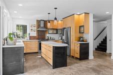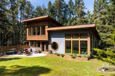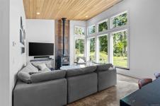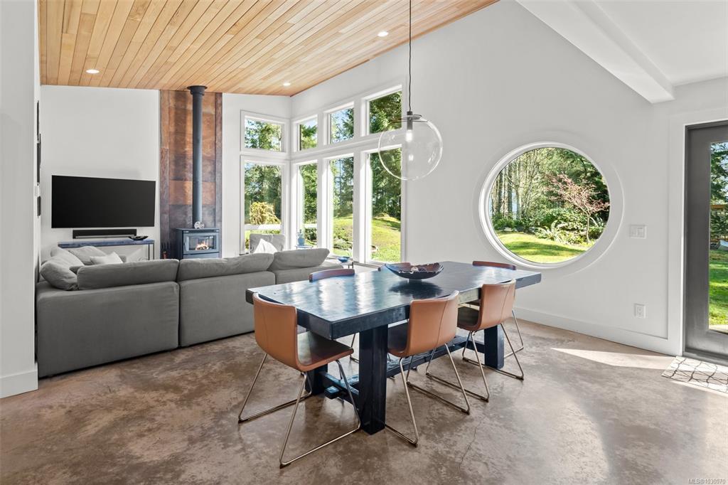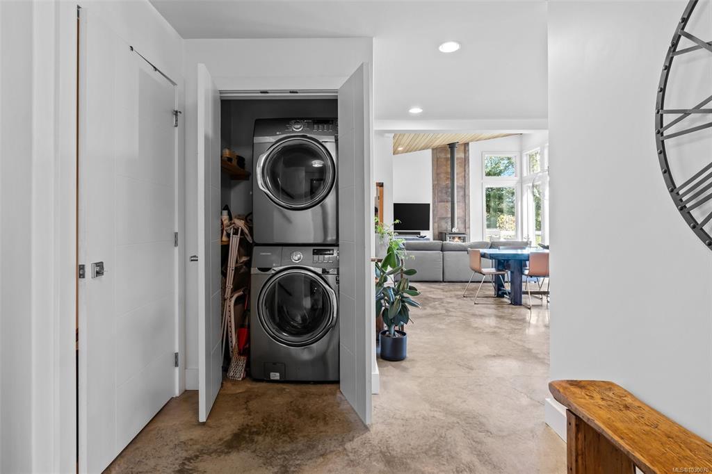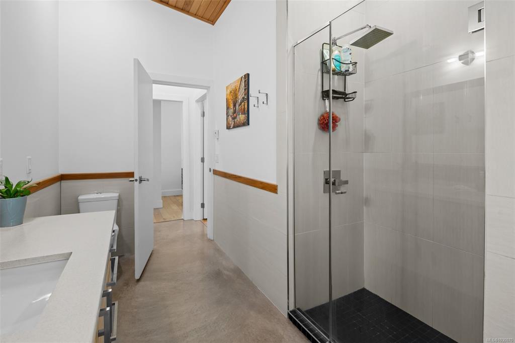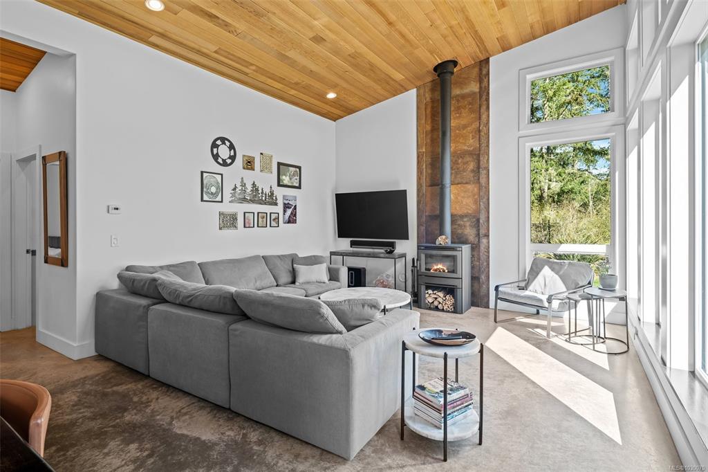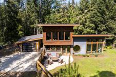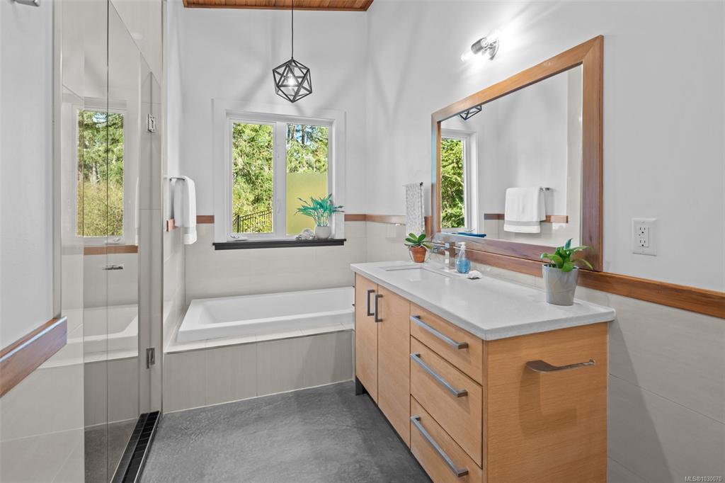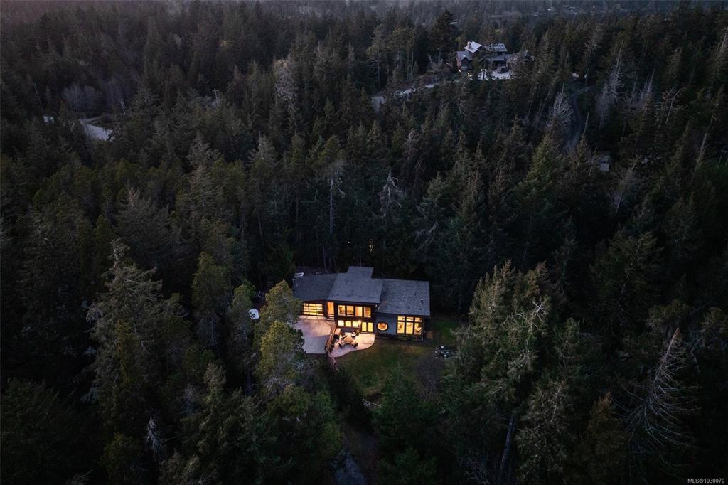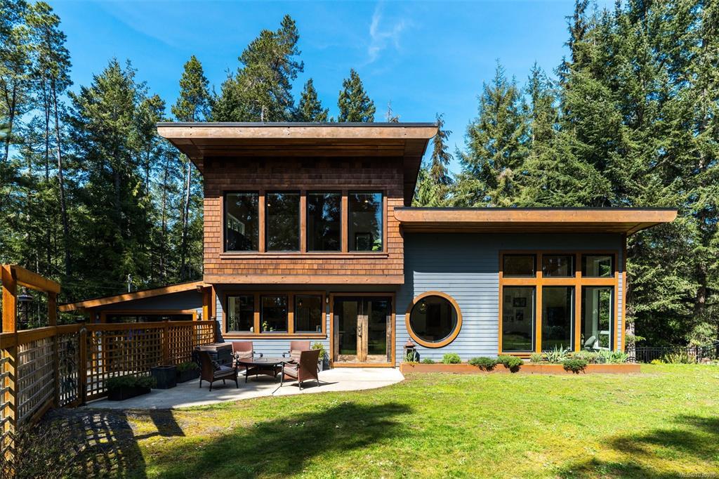 THE FINEST IN LUXURY WEST COAST LIVING! Architecturally inspired & impressively finished West Coast Contemporary 3 bed + office, 2 bath, 2,109sf home on private, beautifully forested & masterfully landscaped estate. Be impressed w/the polished concrete floors (in-floor radiant heat), plethora of custom finishing details, use of natural materials & abundance of light enhanced by airy vaulted ceilings. Gourmet kitchen w/oak cabinetry, quartz counters/island & SS Bosch appliances. Dining area opens thru french doors to patio. Living rm w/floor to ceiling windows & cozy wood stove. 2 generous beds w/oak floors, 4pc bath & laundry complete main lvl. Up: primary suite w/new oak floors, w-i closet, 4pc ensuite & forest views/ocean glimpses. Garage connected by breezeway is finished & perfect for office or gym. Huge basement/crawlspace(6'10"-0'ht). Beautiful yard w/custom fencing, garden beds, shrubs & flowers + hot tub! A rare find!(Lotsize="Private Yard Area"+bldg footprint from Strata Plan)