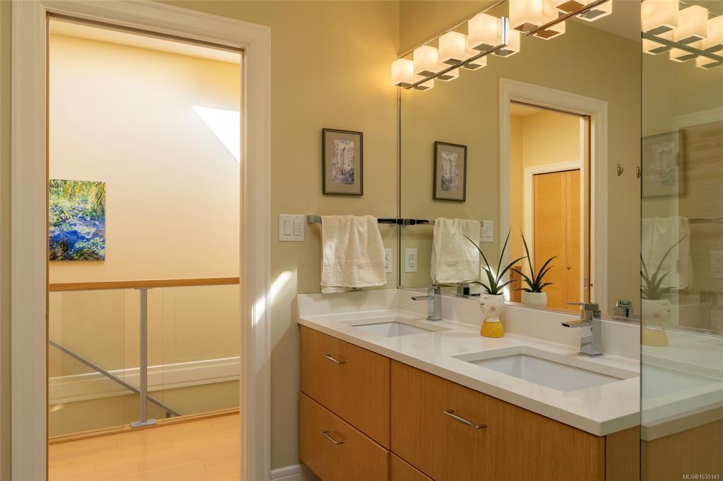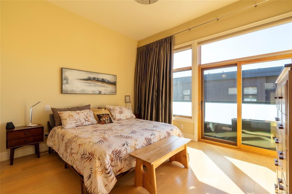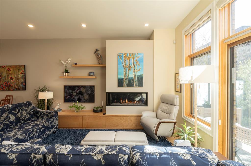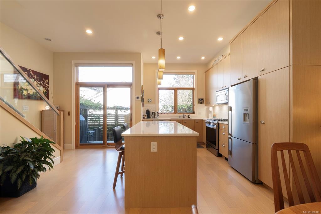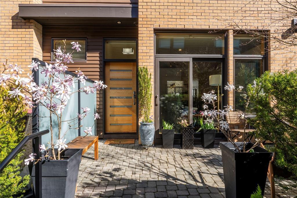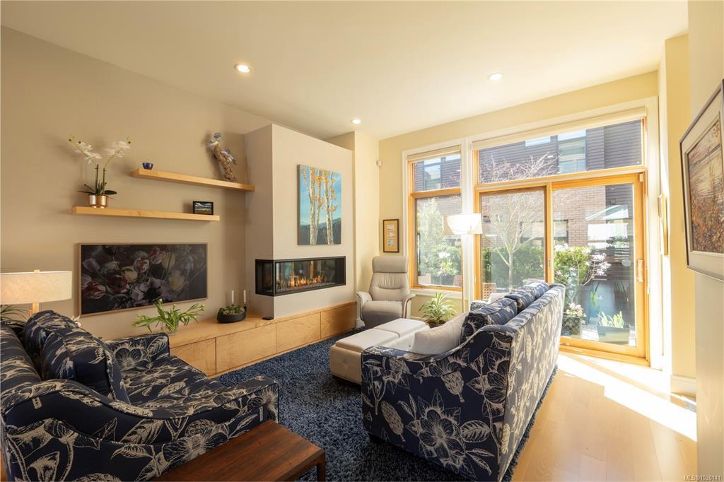 An exceptional chance to own a residence in Terra Verde, a boutique collection of just sixteen upscale townhomes designed by Abstract Developments. Tucked along a quiet tree-lined street near Cook Street Village, this setting blends easy walkable access to shops, dining, and services with a calm, private atmosphere and strong neighborhood feel. Inside, the home offers 1607 square feet of modern living across three levels, featuring three bedrooms and three bathrooms, including a bright ensuite with skylight and a freestanding soaking tub. Highlights include 10-foot ceilings, oversized windows on the open-concept main floor, a sleek updated horizontal gas fireplace with built-in surround, hardwood and polished concrete flooring with radiant in-floor heating, and a private two-car garage in the secure underground parkade. Enjoy outdoor space on a sun-drenched south-facing terrace or the private rear patio off the kitchen; ideal for entertaining, barbecues or a morning coffee.