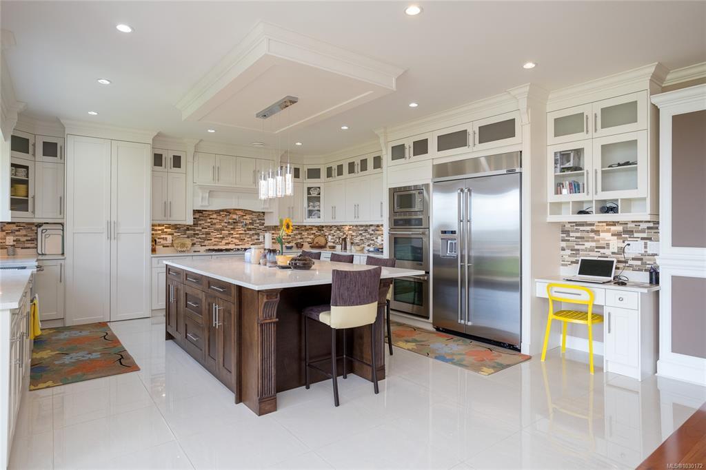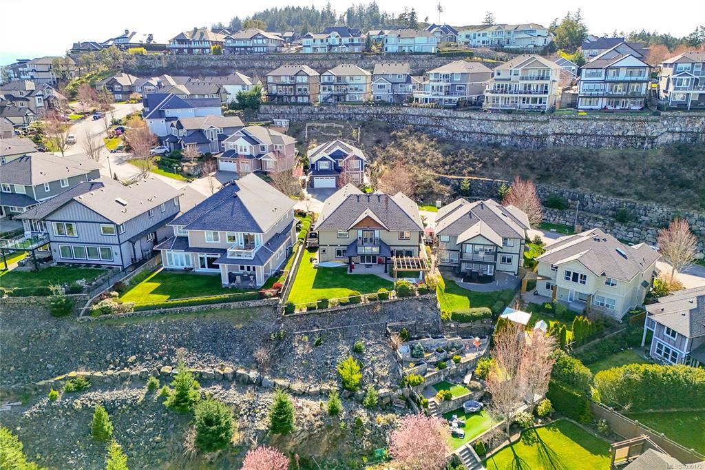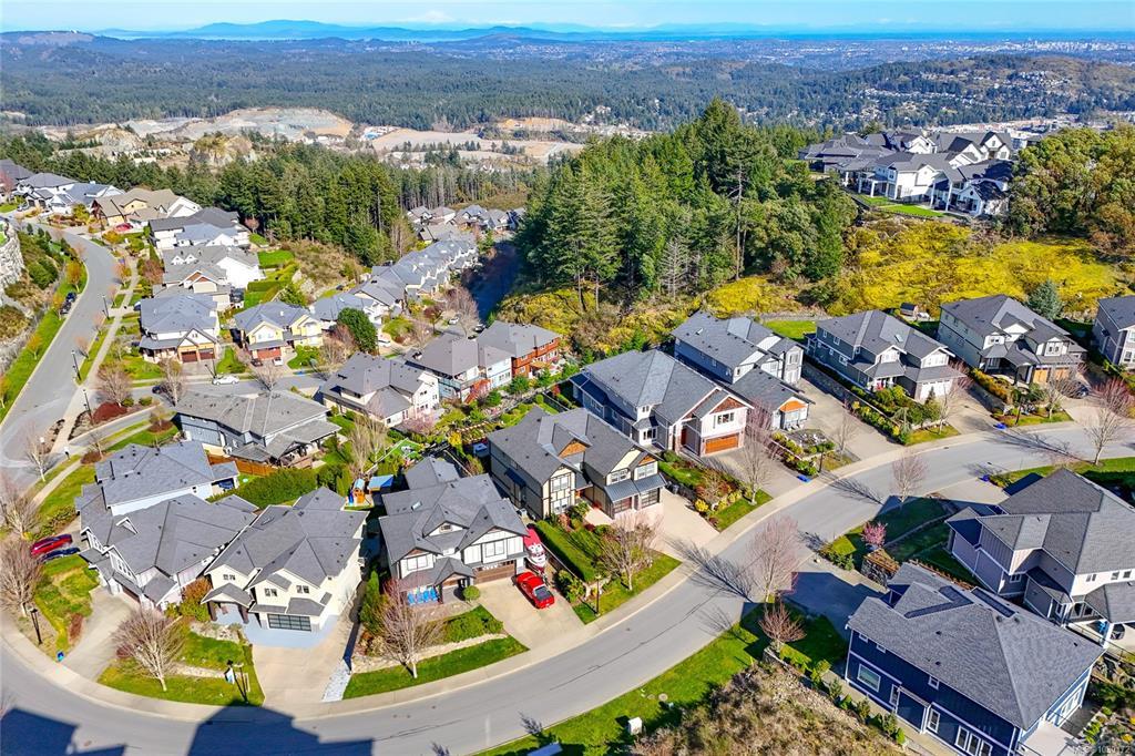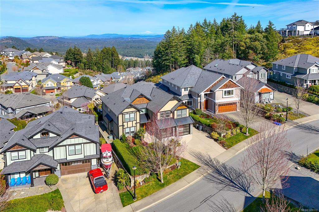 This immaculate two-story residence on Bear Mountain offers exceptional quality throughout and wonderful Views towards Mt. Baker with an open-concept floorplan perfect for modern living. Bright and roomy from the moment you enter the grand entrance and into the elegant living room to the spacious gourmet chef’s kitchen featuring custom cabinetry, high-end Jenn Air appliances, large eating island and a hidden pantry. Large office on main. Upstairs offers 5 bedrooms, including a luxurious primary retreat with private balcony, oversized walk-in closet, spa-like ensuite with jetted tub, dual sinks, and luxury glassed shower. Two cozy fireplaces, radiant in-floor heating, and heat pump elevate comfort and efficiency. Large double garage plus extra driveway parking along side. Legal 1 bdrm suite above garage. The private level backyard is an entertainer’s dream with barbeque area, gazebo with gas fire pit and wonderful views. 10 Minutes to Costco & Millstream Market, 30 minutes to Victoria.