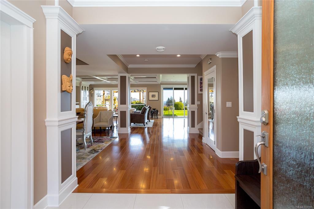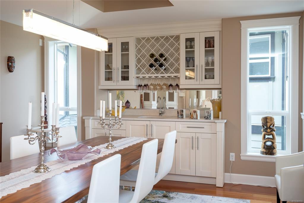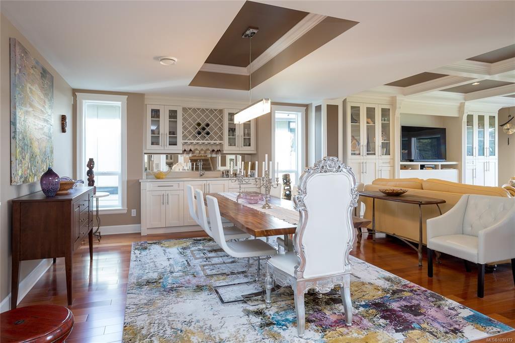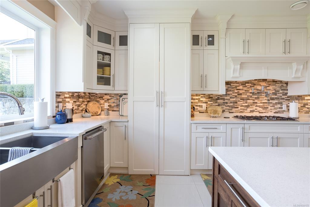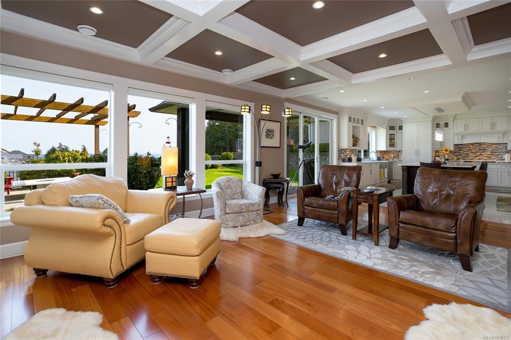 This immaculate two-story residence on Bear Mountain offers exceptional quality throughout and wonderful Views towards Mt. Baker with an open-concept floorplan perfect for modern living. Bright and roomy from the moment you enter the grand entrance and into the elegant living room to the spacious gourmet chef’s kitchen featuring custom cabinetry, high-end Jenn Air appliances, large eating island and a hidden pantry. Large office on main. Upstairs offers 5 bedrooms, including a luxurious primary retreat with private balcony, oversized walk-in closet, spa-like ensuite with jetted tub, dual sinks, and luxury glassed shower. Two cozy fireplaces, radiant in-floor heating, and heat pump elevate comfort and efficiency. Large double garage plus extra driveway parking along side. Legal 1 bdrm suite above garage. The private level backyard is an entertainer’s dream with barbeque area, gazebo with gas fire pit and wonderful views. 10 Minutes to Costco & Millstream Market, 30 minutes to Victoria.