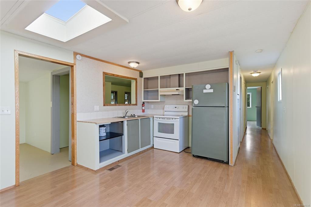 Central Parksville MFD Home on a huge freehold lot—ready for your updates and personal touches! Attention first-time buyers, young families, and active retirees! Don't miss this 2 Bed + Den/1 Bath Rancher-style Manufactured Home on its own sun-soaked .26-acre lot. Ready to begin its next chapter, it features a skylight and plenty of windows, a single-level layout, ample storage, laundry facilities, and parking for extra vehicles. You'll love the unbeatable location on the fringe of downtown Parksville—just a short walk to shopping, amenities, and the beach. Gated entry, spacious parking area, and a covered carport lead to a porch. Inside, a bright skylit Living Room and Kitchen offer laminate floors and large windows. Kitchen includes fridge/stove and room to customize. 2 Bedrooms, 4-pc Bath, Den, Laundry, and Storage. Large fenced yard with sheds, fruit trees, berries, and sunny exposure. Unbeatable “walk-to” location is perfect for all mobility levels. Visit our website for more.