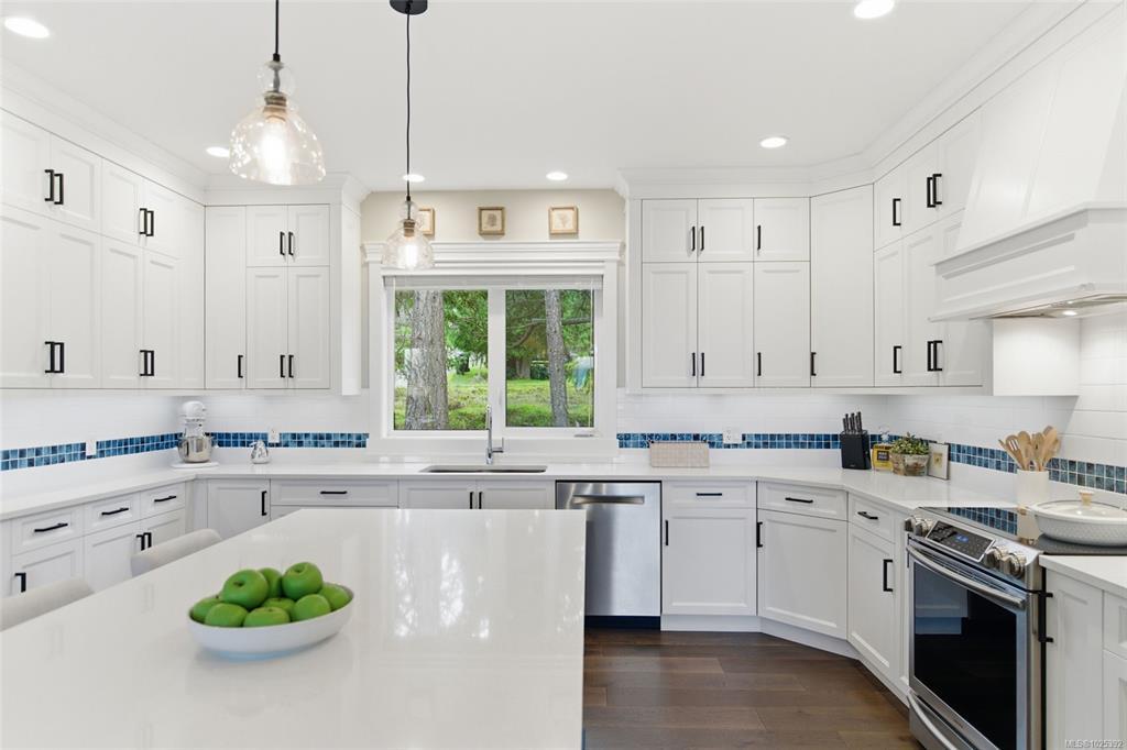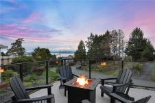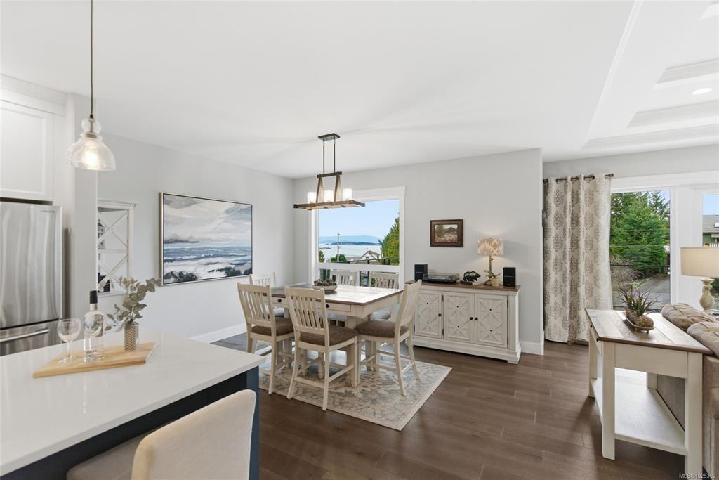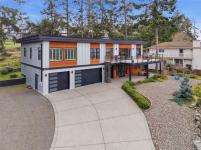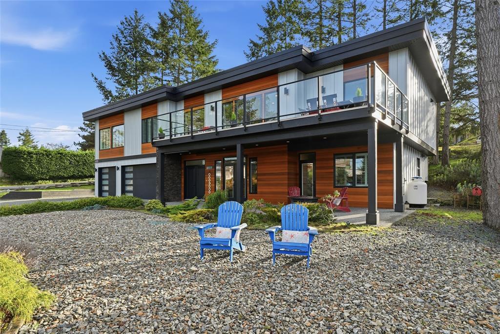 Stunning Oceanview Contemporary Home! Exceptional 5 Bed/4 Bath Modern West Coast Home on low-maintenance .29-acre lot, featuring breathtaking views of several islands, Georgia Strait, and mainland mountains. All main living areas are on one level, and there's a lower-level Guest Suite with a Kitchenette and Laundry—ideal for an Airbnb, multi-generational living, guest quarters, or home business. Features incl OS windows, large deck and patio, 3 ensuited Bedrms, 3-Car Garage, and RV prkg. OH foyer with stairs up to open-plan Kitchen/Living/Dining Room. Living Room offers a coffered ceiling, gas FP, and doors to oceanview deck. Chef’s Kitchen has large island and WI pantry. Also on the main level: Primary Suite with WI closet and 5-pc ensuite, 2 Bedrms, 3-pc Bath, and Laundry. Lower Guest Suite features Living Room, Kitchenette, laundry, and two Bedrms. Short stroll to ocean, mins from golf, waterfront village, and trails. 20-mins to Parksville and Nanaimo. Visit our website for more.