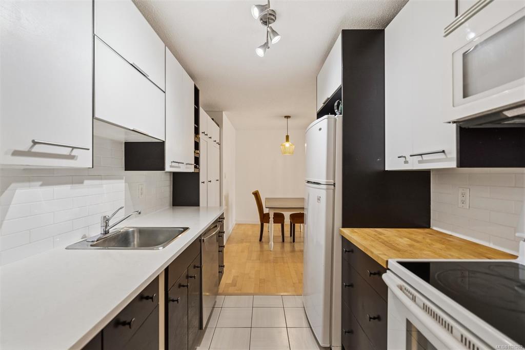 Perfectly positioned between Downtown and Cook Street Village, this beautifully refreshed 2 bed, 2 bath condo offers an exceptional blend of lifestyle and location. Thoughtfully updated throughout, the home features a spacious, well-designed layout with excellent storage, a stylish kitchen, laminate flooring, and contemporary bathrooms. The kitchen flows effortlessly into the bright living and dining areas, opening onto a sunny balcony that fills the space with natural light. The generous primary bedroom includes a convenient 2-piece ensuite, while the second bedroom is well-sized with ample closet space. Additional highlights include a covered parking stall, oversized storage locker, secure bike storage, and a rec room. Set in one of the city’s most desirable neighbourhoods, you’re just steps to shops, cafés, groceries, the YMCA, Beacon Hill Park, and everything downtown has to offer!