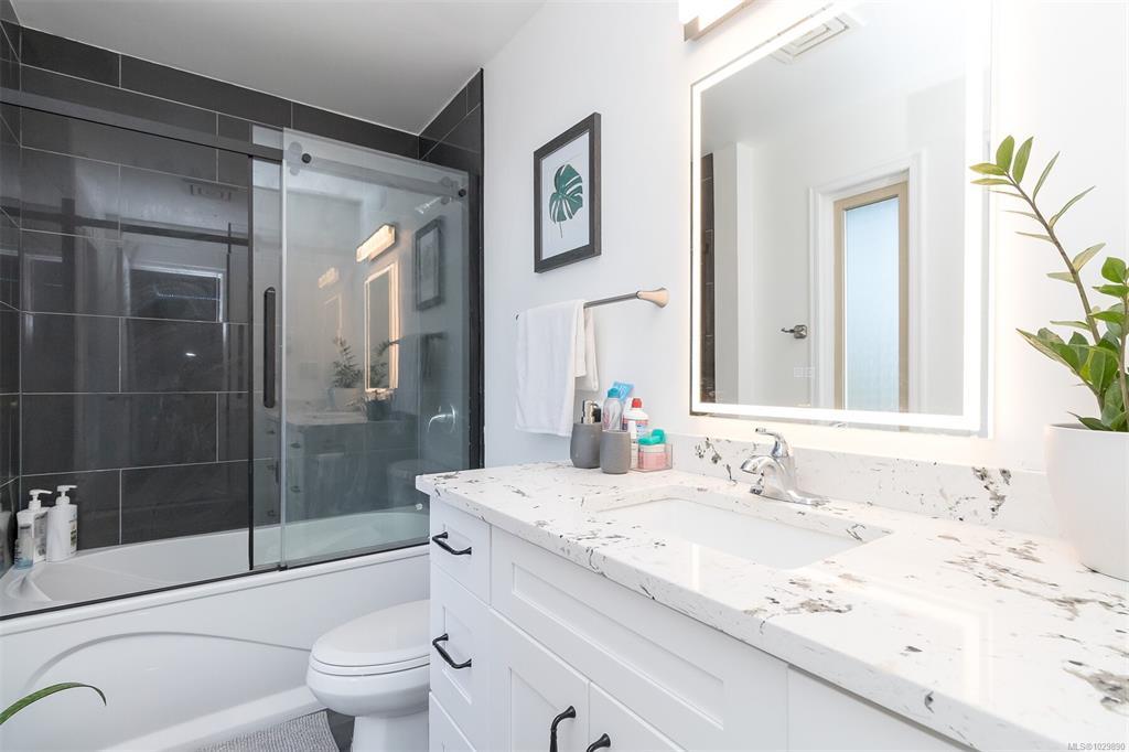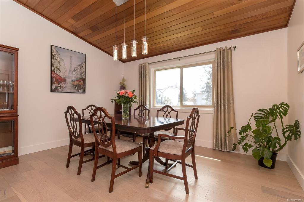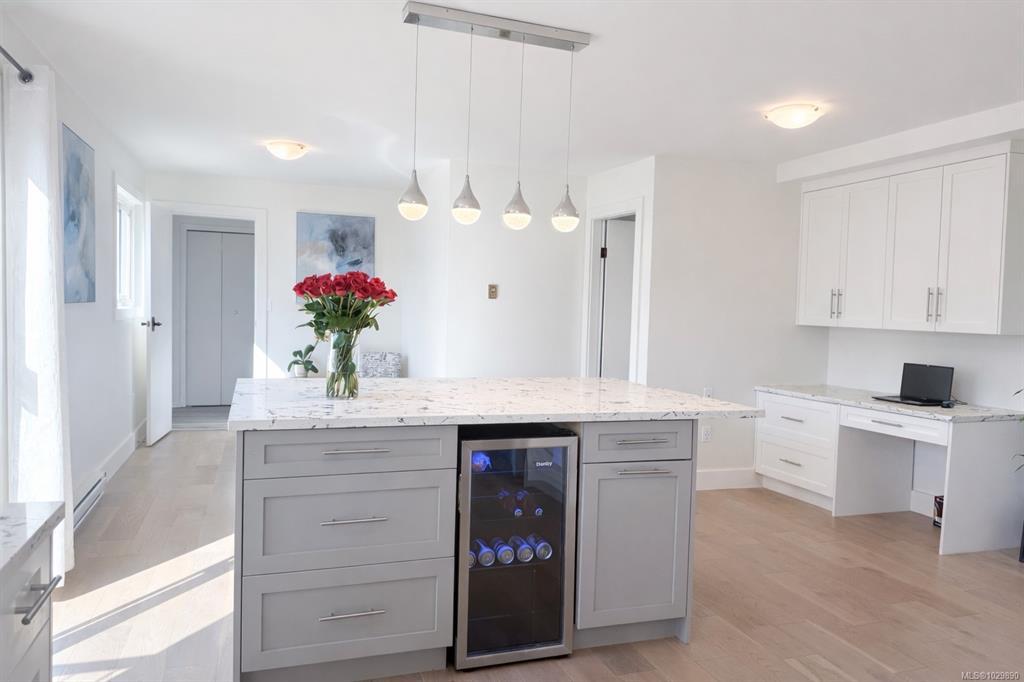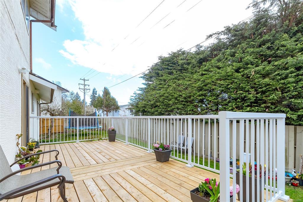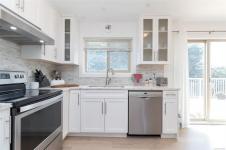 Updated 6 bed, 5 bath family home in the popular Gordon Head area. Features a spacious kitchen with quartz countertops, a large island, ample cabinetry, and a built-in office nook/desk. Stunning engineered hardwood floors run throughout the main and upper levels. Main and upper bathrooms include custom-made vanities with matching quartz countertops for a clean, cohesive finish. Main floor offers a bright and open living and dining area with high ceilings. French doors lead to a sunny deck and private backyard. Upstairs features 3 generously sized bedrooms and 2 full baths. The lower level includes a large living/media room, 3 bedrooms, 2 baths, and a double garage with 10’ ceilings. Newer deck and hot water tank (2026) Conveniently located close to schools, UVic, parks, shopping, and transit.