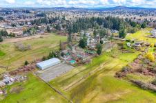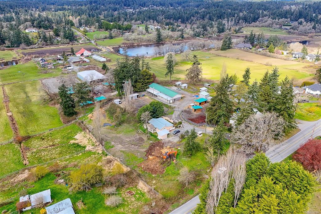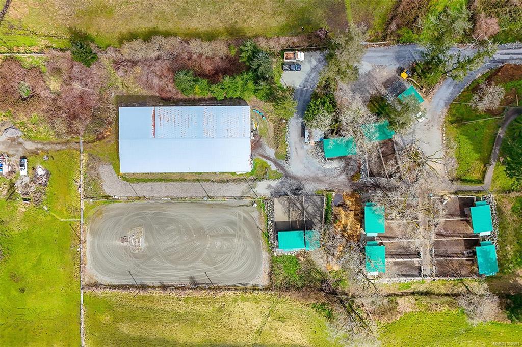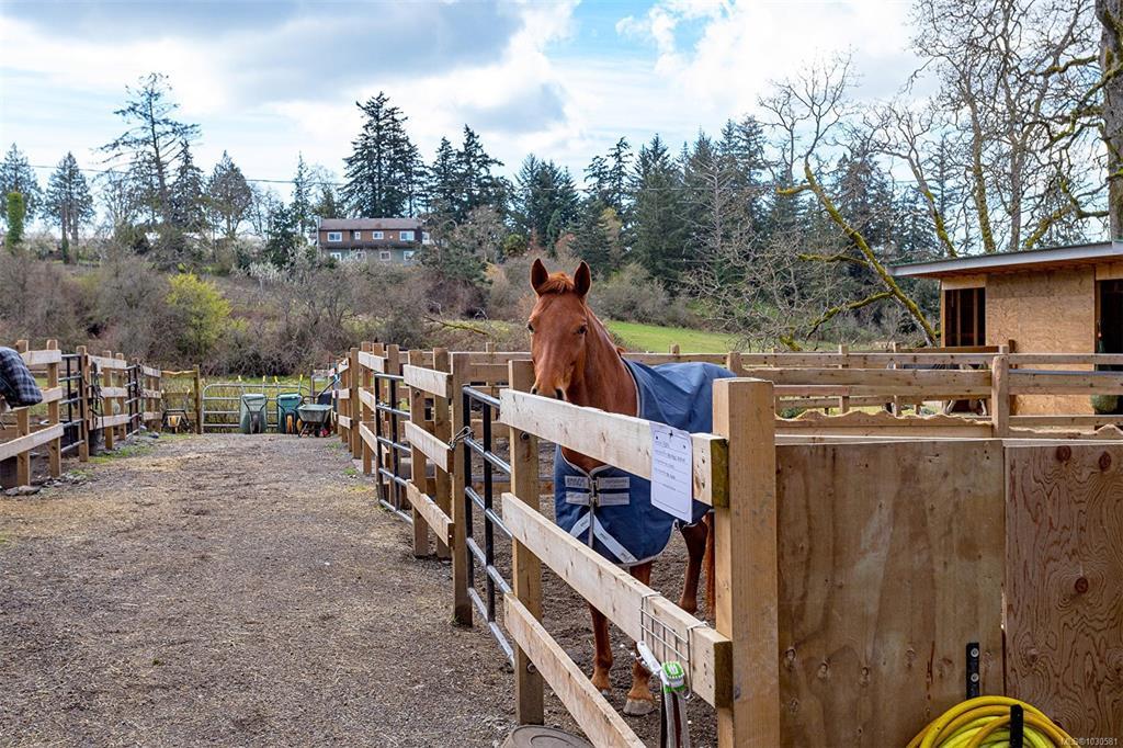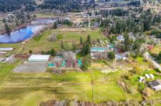 Located near VGH, this rare 5-acre property with an active horse-boarding operation is ideal for equestrian or hobby farm use. Set within the ALR and on municipal water, it offers rural living with urban convenience. The property features multiple paddocks (approx. 20-horse capacity), a large 12-stall barn with hay storage, tack areas and lockers, plus a 139’ x 67’ riding arena with power and drainage for year-round use. There are 2 residential dwellings on the property. Main home offers a bright living/dining area with gas fireplace, deck with valley views, spacious kitchen, 2 bedrooms, 3-piece bath, and a versatile family/rec room (or potential primary) with fireplace. The second dwelling provides additional family or rental space with open living/dining, full kitchen, primary bedroom with deck access, and a 4-piece bath. Ample parking, with a horseshoe driveway and RV space, provides easy access to all areas of the property. Showings by appointment only for pre-qualified buyers.