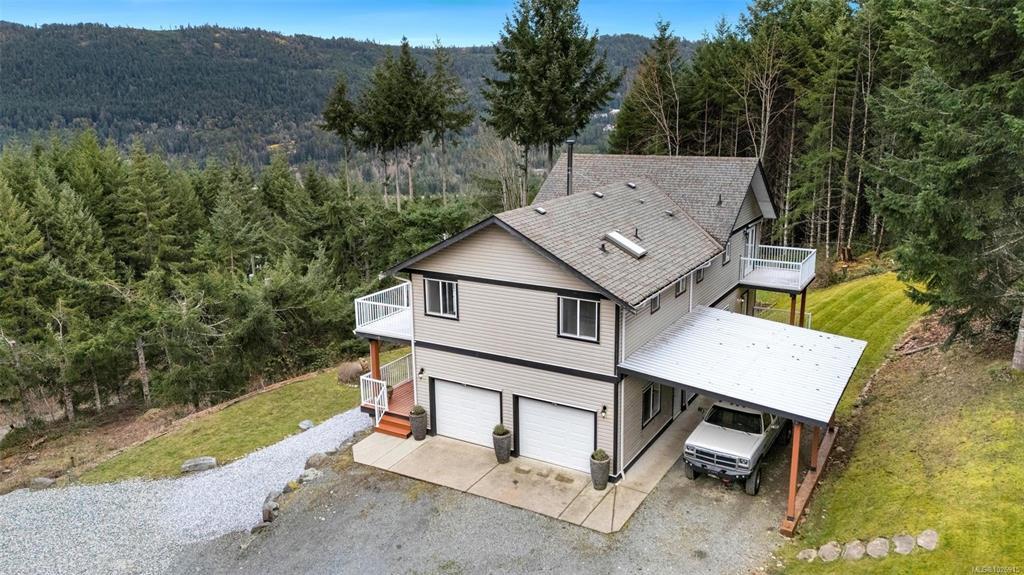 WOW - 2.496 Acres Multi Gen Ready for $1,039,000: This 4 bed 3 bath home features 2 beds and 2 baths up with 2 beds and 1 bath down. 2 kitchens, 2 living rooms, 2 laundry rooms, features a self contained 1 bed suite. Could be converted to a 2 bed suite or use the room as an office/den/playroom just off the main entrance. Recent upgrades include 2 new bathrooms upstairs. Heat Pumps on both levels, wood stove with blower/vents for those cozy winter evenings. Updated kitchen, stainless steel appliances both kitchens, new LG washer/dryer set up and front load washer/dryer stacked down. Outside you'll find a firepit, wood shed and ample parking for your fleet of vehicles, RV parking, trailers and toys. Privacy with room to roam, watch the eagles and hawks soar. Ideal for gardening, hiking the adjacent trail or just chilling on the multiple decks. Call your agent and start the car. Offers exceptional value in the South Shawnigan Market. You'll be home on the Ridge before you know it.