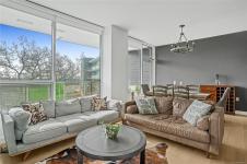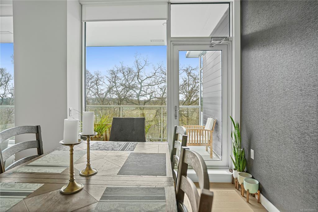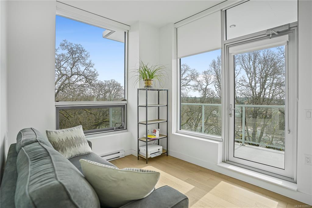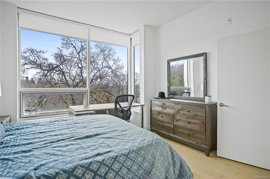 Welcome to Unit 402 at the Lyra Residences, a concrete and steel building on picturesque Christmas Hill, where modern design meets scenic surroundings. This light-filled 2 bed, 2 bath home offers stunning views of the Olympic Mountains, downtown Victoria, & Swan Lake. The open-concept layout features expansive windows, a sleek kitchen with SS appliances, & a large quartz island, perfect for entertaining. The living area features a cozy gas fireplace & full-size dining space that opens to a 305sqft patio complete with a gas BBQ hookup. The primary bed includes a spacious double-sided walk-through closet & a spa-inspired ensuite with in-floor heating. A 2nd bedroom with deck access & a full bath provide flexibility for guests or a home office. Complete with in-suite laundry, secure underground parking roughed in for an EV charger, & a large storage locker, all within walking distance to parks, trails, and Uptown, & a short drive to dt Victoria, this condo is one you won’t want to miss.