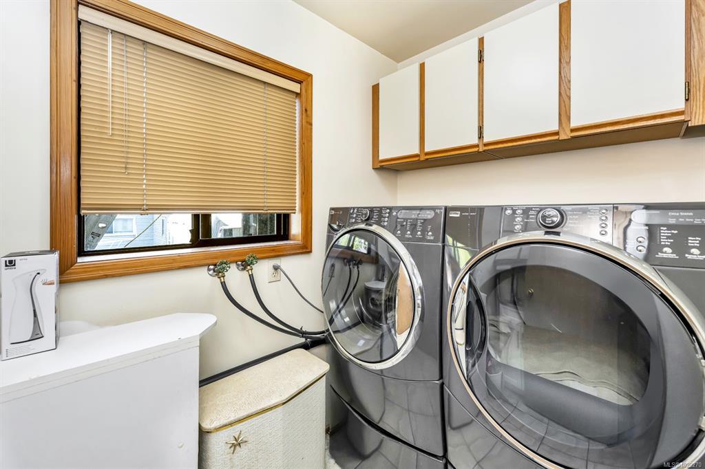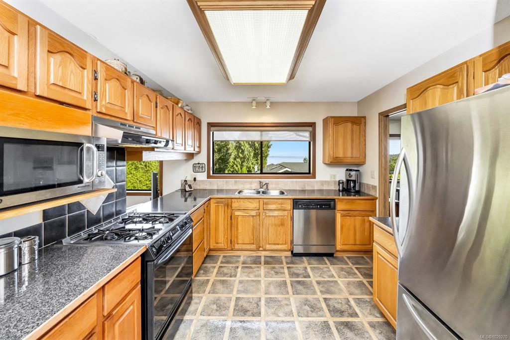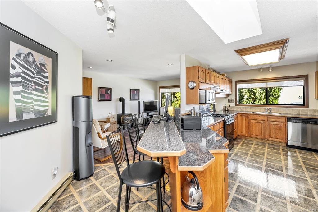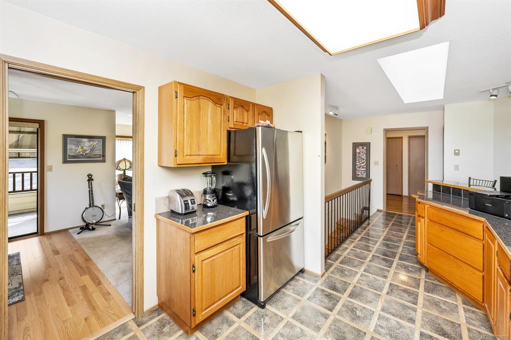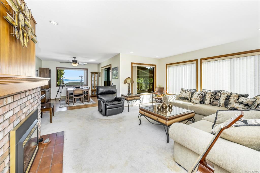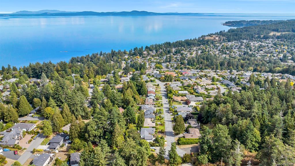 The hobbyist or tradesperson’s dream! Beautiful Custom Cordova Bay home with bonus two driveways and two double garages, at the end of quiet street! Fabulous sunny location with sweeping water views. Over 2670 sq ft of living space w/ 3 bedrooms & 3 baths, easy to suite if needed. Upstairs features large Primary, spacious 2nd bedroom & 2 full baths. Open concept kitchen to family room, formal dining, living room, 2 gas fireplaces. East facing ocean views from every window and sundeck. Lower level offers a bedroom, bathroom, laundry & huge flex room area. Cedar exterior with rubber F/P 50-year roof. Large private yard with additional garden shed, and extensive parking for RV, boat and extra vehicles. 200 Amp service. Close to several parks, beaches, recreation, golf courses, hiking trails & some of the best schools Victoria has to offer.