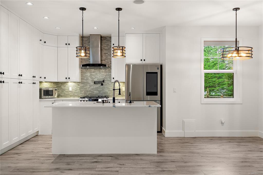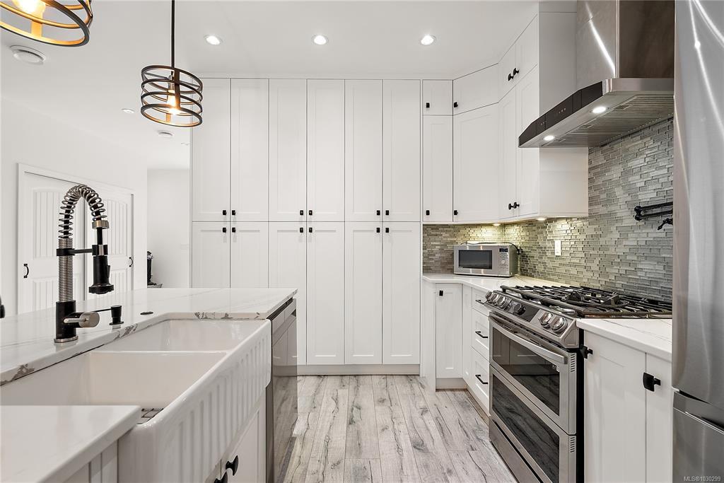 Beautiful 3-bed, 3.5 bath home with bonus family room and large media room could easily make this a 5-bedroom home, suite potential. The both floors boast 9-foot ceilings throughout giving an extra spacious feeling. The main has gourmet kitchen, quartz countertops, stainless steel appliances, instant hot water, pot filler, gas range, smart fridge, dining area and living room that opens to a fully covered patio with its built-in gas space heater and gas BBQ outlet. The lower floor finishes off with a large family room, 4pce bath and garage! Upstairs, you'll find a huge media/entertainment room with drop-down movie screen and projector, another 4-piece bath, 2 more bedrooms, plus a primary suite with all the fancy touches, large walk-in closet, ensuite with jacuzzi/hydrotherapy stand up tub, Deluxe steam shower, OVE smart bidet toilet, double sink vanity and laundry room. Additional highlights include remote blinds, heat pump, and in floor radiant heating throughout. The list goes on.