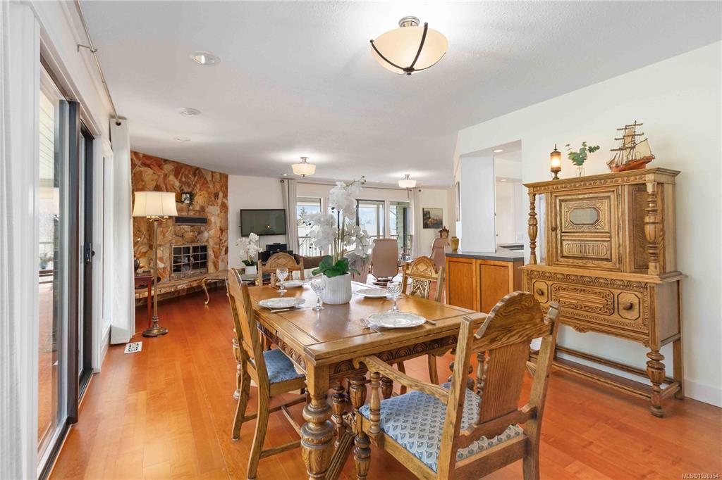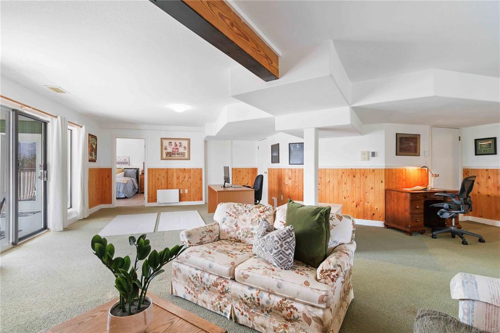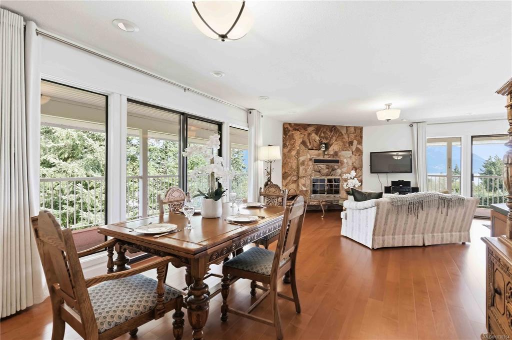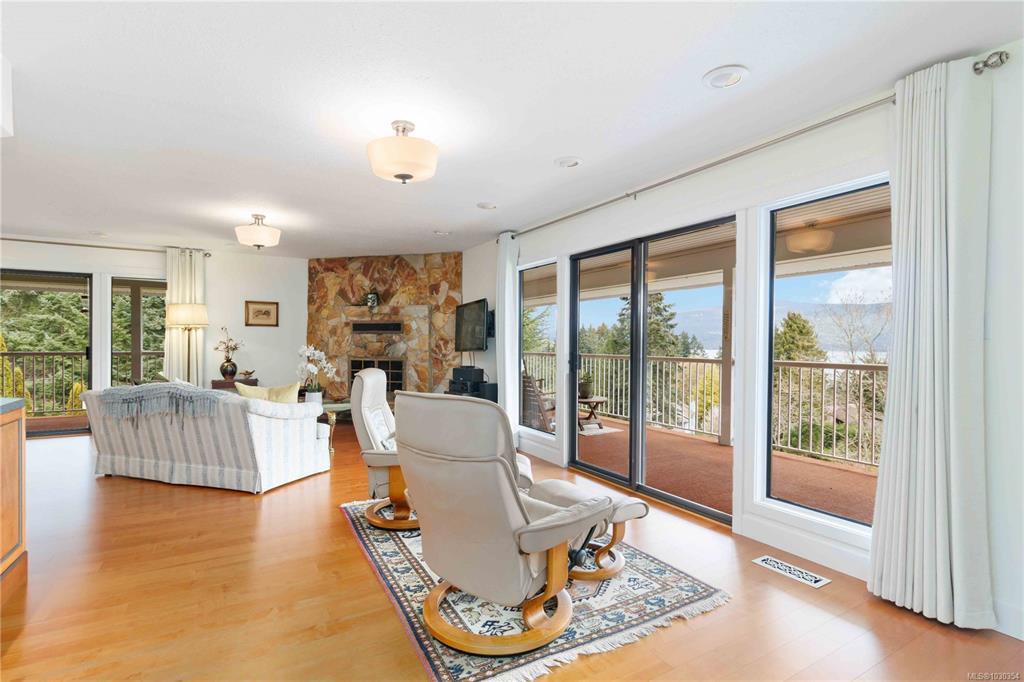 From the moment you walk in the door you will be impressed. With breathtaking ocean & mountain views that almost every room in this split-level home takes advantage of. Spacious living & dining rooms & covered wrap-around deck is perfect for entertaining. The no-step accessible lower level boasts a large family room w/ wood fireplace, 2 bedrooms, library plus a full additional kitchen—ideal for extended or multi-generational families. Includes a new heat pump for year-round comfort, re-designed main floor kitchen to take advantage of the views, tons of parking & room for your RV. Located in sought-after Satellite Park, you'll enjoy the perfect blend of peaceful country living w/ convenient access to schools, shopping, restaurants, golf, and world-class marinas. Walk to Boatswain park or the Grantfield Trail w/ multiple public beach access points. Minutes to the highway for easy commuting to Victoria or Nanaimo, yet tucked away in a serene setting w/ stunning natural beauty all around.