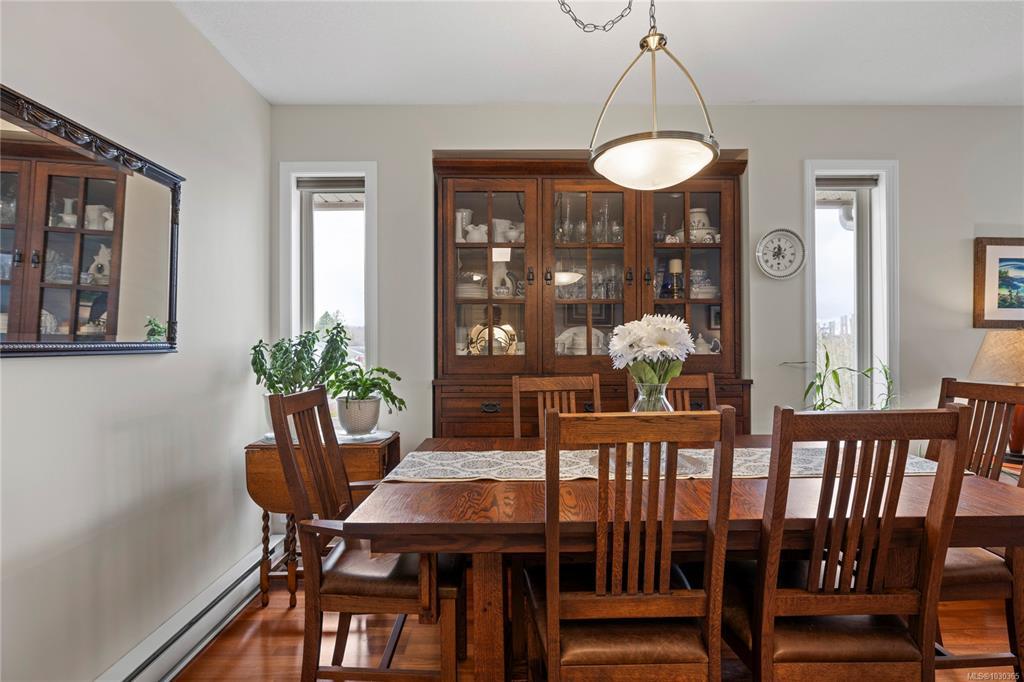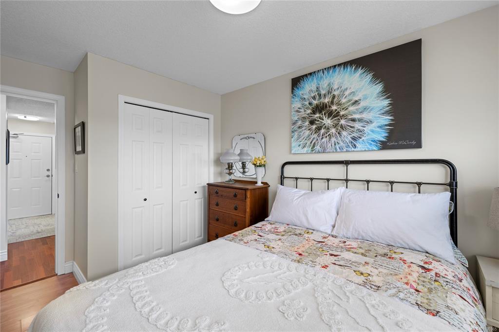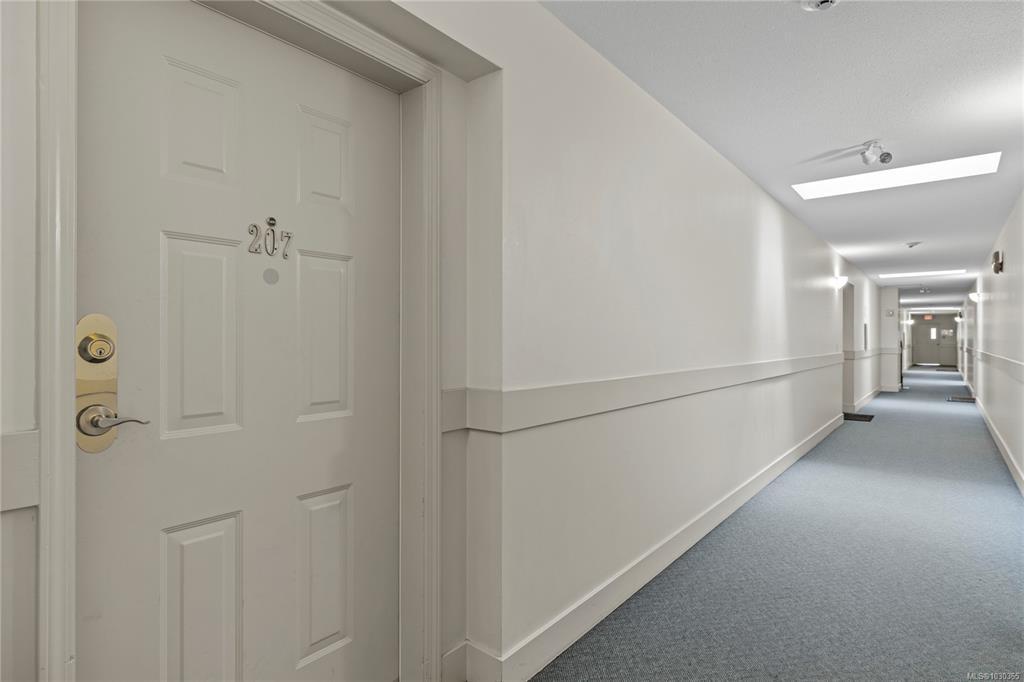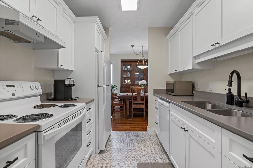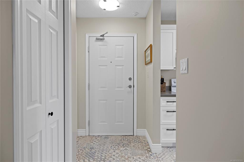 Discover modern comfort in this bright, top-floor corner suite. Spanning 950 sq. ft., this home has been beautifully revitalized with new flooring, contemporary lighting, and a refreshed palette. The heart of the home is a galley kitchen featuring sleek updated countertops, refaced cabinetry, and updated flooring. This space flows into a dining area and a living room boasting 10' ceilings and a cozy fireplace, leading to a spacious private balcony with views of Mount Arrowsmith.