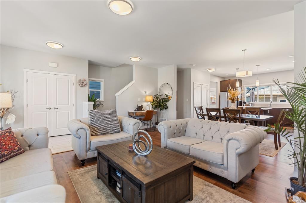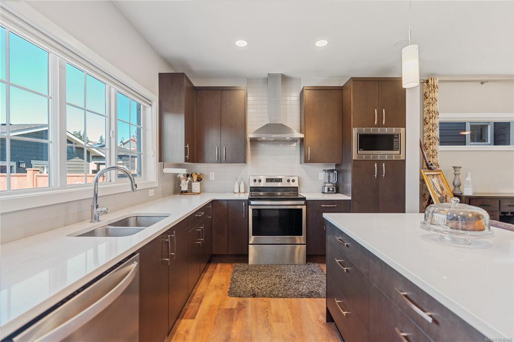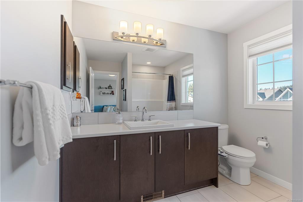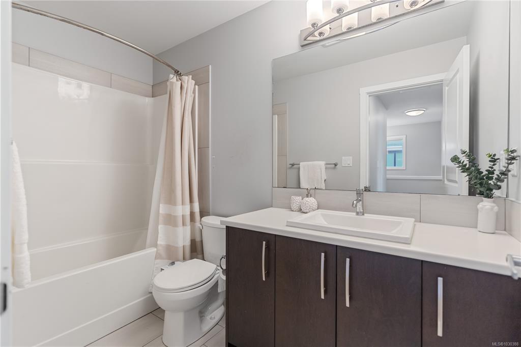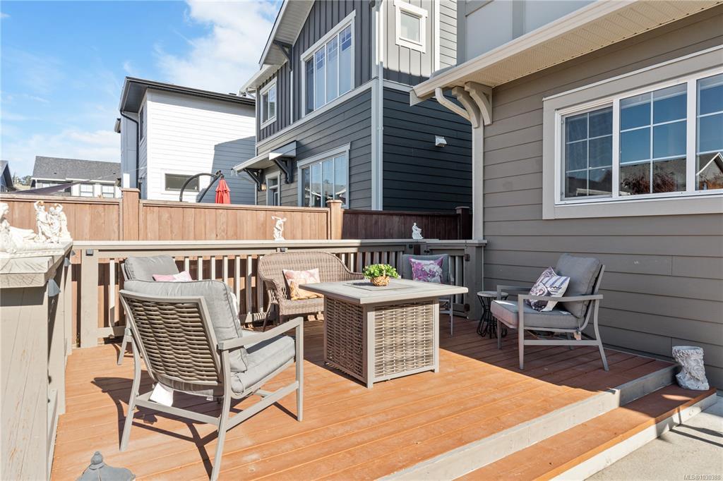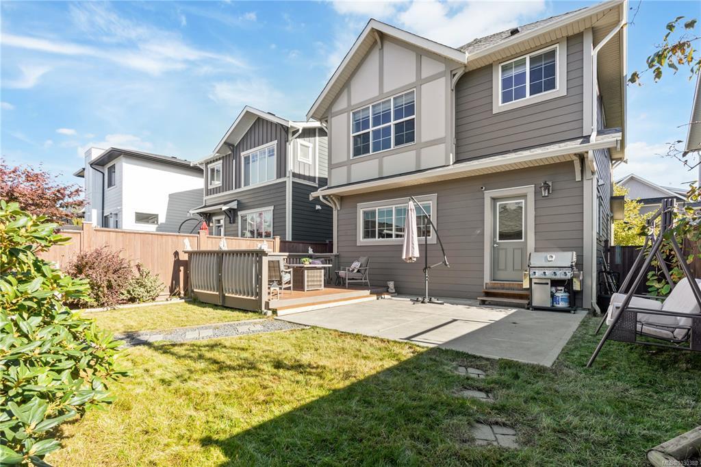 Here is your chance to own & live in Royal Bay! This bright, 2020 green-built 4BR, 4Bth home is on a quiet street, close to the ocean & has many upgrades. Upstairs you'll find 3BR & 2 full Bths, downstairs is another BR, full bth, storage & fabulous family room! The airy, open-concept main floor has a big beautiful kitchen overlooking backyard, w/abundant cupboard & counter space & eating bar. Detached garage & adnl parking off lane are awesome bonuses plus a cozy natural gas FP, on demand hot water, custom blinds & upgraded HW flooring. Enjoy morning coffee on the charming front porch. Spend afternoons & evenings in the fully fenced, low maintenance, SW exposed backyard w/space to play. You’ll love the beautiful solid wood deck, in ground irrigation, lovely landscaping & lighting. Royal Bay offers awesome playgrounds, walking trails, schools, grocery, pharmacy, post office, coffee & eateries within steps, plus spectacular Royal Bay Beach and Esquimalt Lagoon. Priced right - act quick!