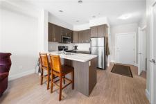 The spacious bedroom provides a comfortable retreat, while the versatile den is ideal for a home office or guest space. Additional features include a 3-piece bathroom, in-suite laundry, secured underground parking, storage locker, recreation area, and dog park.