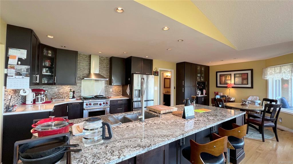 This beautiful 6 beds 5 baths home offers ocean glimpse of Cordova Bay and is situated in a wonderful neighbourhood just above Lochside Trail, with easy access to both the trail and McMinn Park. The property has been meticulously maintained and thoughtfully updated, featuring a new solarium (2020), windows (2021), fridge and gutter system (2022), garage door (2023), new AC heatpump (2024),hot water tank (2025), and regular roof maintenance. Hardwood floors on the main level, a gourmet kitchen, and cozy fireplaces. Legal lower suites. Fully fenced backyard, complete with rock features, a pond, fruit trees. Conveniently located near Schools, Broadmead Village, and Commonwealth Recreation Centre. Come make it your DESTINED HOME!
