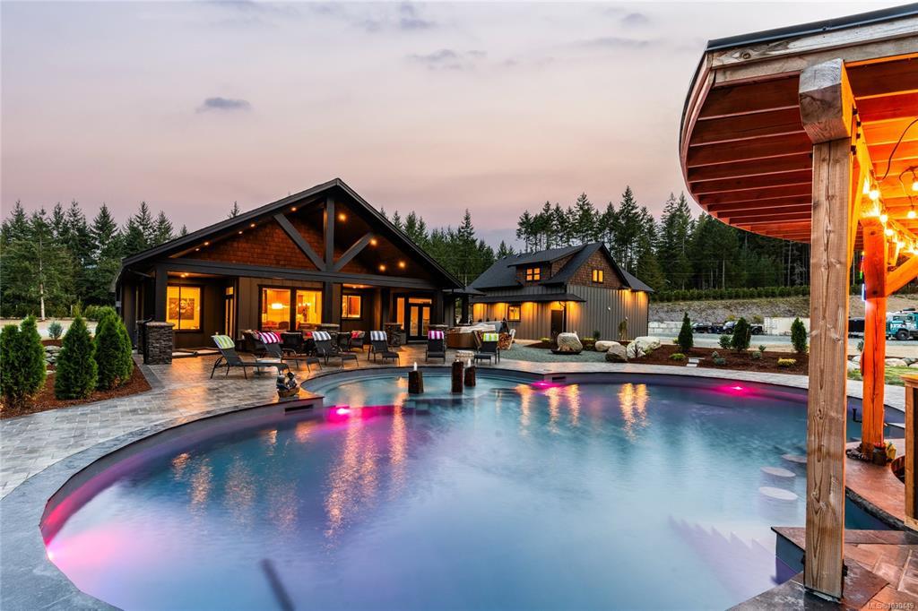 Rural retreat on a level 4.4-acre parcel of pristine countryside. Custom built (2021) luxury home spanning 3,765 sq. ft. Dream kitchen with Jenn-air appliances, 6-burner range, SXS fridge & freezer, under-counter fridge, quartz counters, center island & walk-in pantry. Open-concept living with fireplace, built-in cabinetry, crown molding, & engineered hardwood flooring. Primary suite w/ luxurious ensuite. Pedestal tub & glass-walled shower. French doors access the hot tub, pool, & covered patio. Two more bedrooms, walk-in pantry, laundry room, & 4-piece bath on the main. Heated custom pool is a masterpiece, swim-up bar, basalt column fountains, custom underwater lighting, outdoor shower & more. Detached 3-bay garage with a custom wet bar & a 2-piece bathroom. 1029 sq. ft. unfinished upper floor waiting for your ideas. There is even a 22kw whole-house backup generator. This fully fenced property provides ample room to add a barn, riding ring, and more. This could be your dream property!