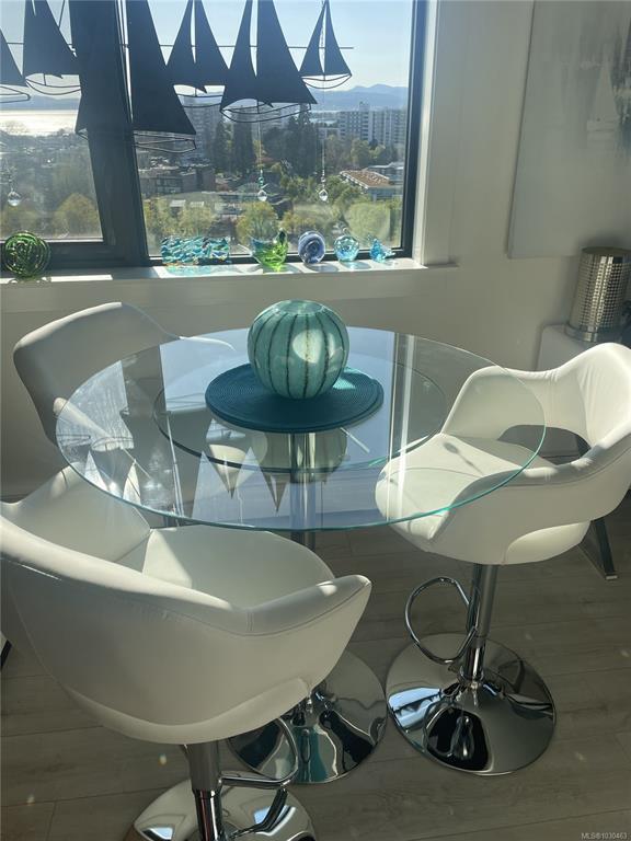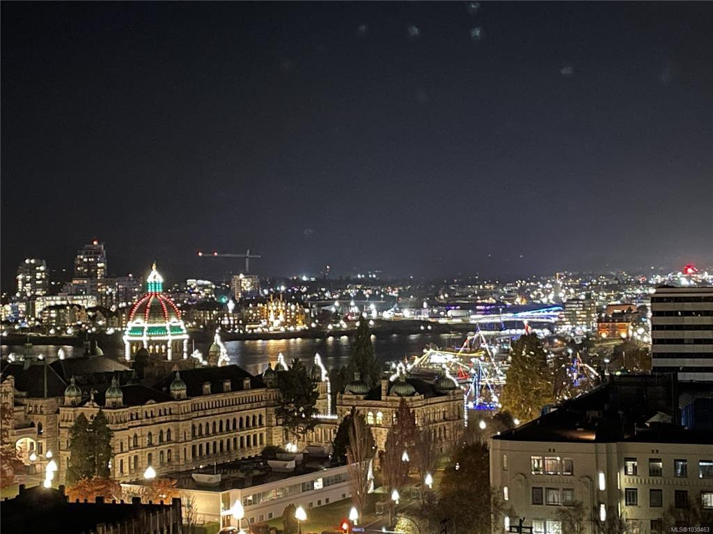 Rarely do views like this come at this price! This stunning NW corner 1-bed at Orchard House delivers a breathtaking panorama — snow-capped Olympics, Strait of Juan de Fuca, Inner Harbour, city lights & cruise ships berthing, all from your large balcony finished with composite deck tiles. Freshly updated with custom power blinds, newer laminate flooring, fresh paint, tiled kitchen backsplash, upgraded light fixtures & newer toilet. Just 10 minutes walk to James Bay's numerous amenities & steps to Beacon Hill Park, the Museum/IMAX & Cook Street Village with a 90 Walk Score. This adult-oriented leasehold community offers a Jacuzzi, heated outdoor pool, saunas, bike storage, workshop, locker & secure parking. The $755 monthly fee covers property taxes, heat, hot water, insurance & 24/7 management. A rare opportunity to own a move-in ready, view-packed corner unit in one of Victoria's most iconic addresses. Quick possession possible!