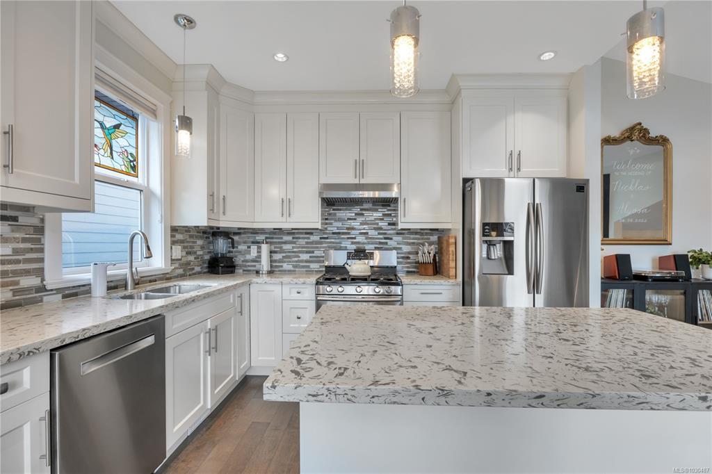 Immaculate, like new, 4-bed, 3 bath home w/inlaw suite in one of Nanaimos best family neighborhoods, Linley Valley. Built amongst acres of parkland and trail systems, you’re surrounded by parks & nature while still less than 5 minutes to shopping, schools, & all north Nanaimos amenities. The breathtaking main level features high ceilings & an open layout filled with natural light and vaulted ceilings. The kitchen and living area flow together around a cozy gas fireplace, perfect for everyday living or entertaining. The spacious primary bed includes a walk-in closet & stunning ensuite. Downstairs offers flexible space with an additional bedroom, large laundry area, garage and a cute 1-bedroom in-law suite with separate entrance. Features include gas furnace, on-demand hot water, low maintenance yard with greenhouse & garden beds, loads of parking & some remaining new home warranty. Stunning & exceptionally well cared for home that must be seen. Measurements approx; verify if important.