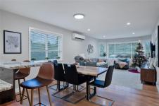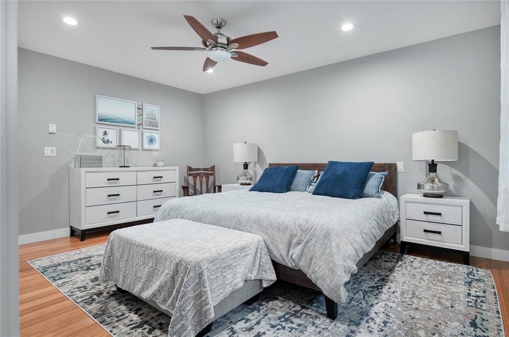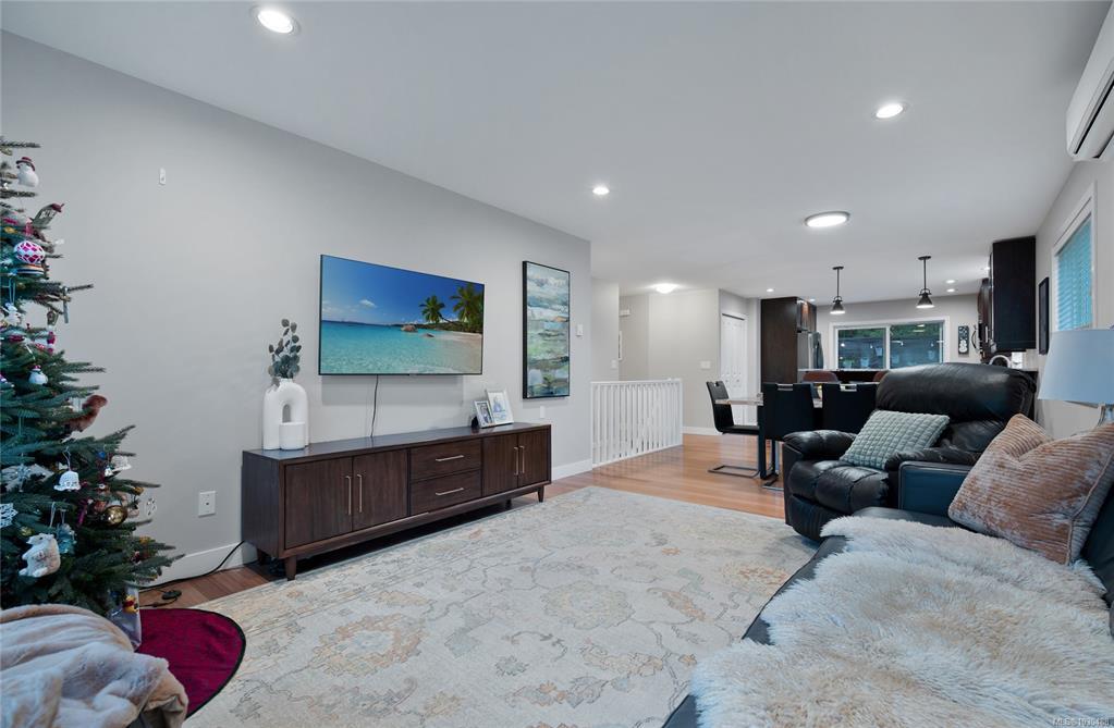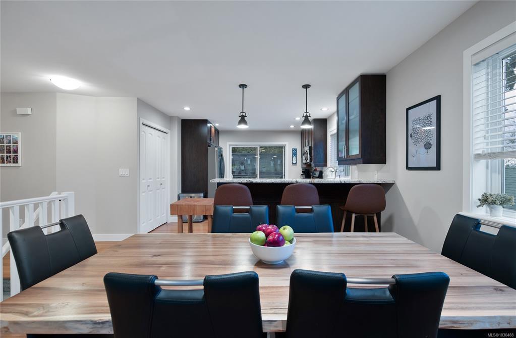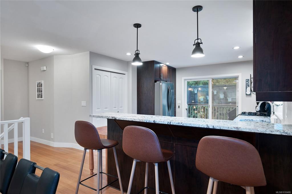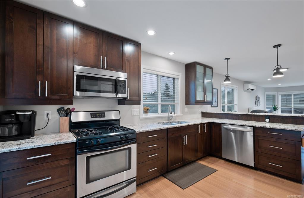 Welcome to this thoughtfully laid out and inviting two-story home in a very quiet and sought after South Nanaimo neighbourhood. This 5 bed plus den, 3 bath, nearly 2300 sq ft home also contains a bright 2 bed, 1 bath legal suite with private side entrance. Upon entering, there is a spacious tiled hallway with access to garage, den, and laundry room. Upstairs, you’ll find the bright and spacious open-concept kitchen, dining and living room. The entire main level has bamboo wood flooring and tiled bathrooms. The kitchen consists of granite countertops, stainless steel appliances, bar height seating area, and plenty of storage options. Extras include a heat-pump, hot water on demand, and dimmable recessed lighting throughout. The primary bedroom is large and bright, complete with walk in closet and 4 pce ensuite with tiled tub. The 2nd and 3rd bedroom, with another 4 pce bathroom, complete this level. There is also a fully fenced yard with private deck, fire pit, and in-ground irrigation.